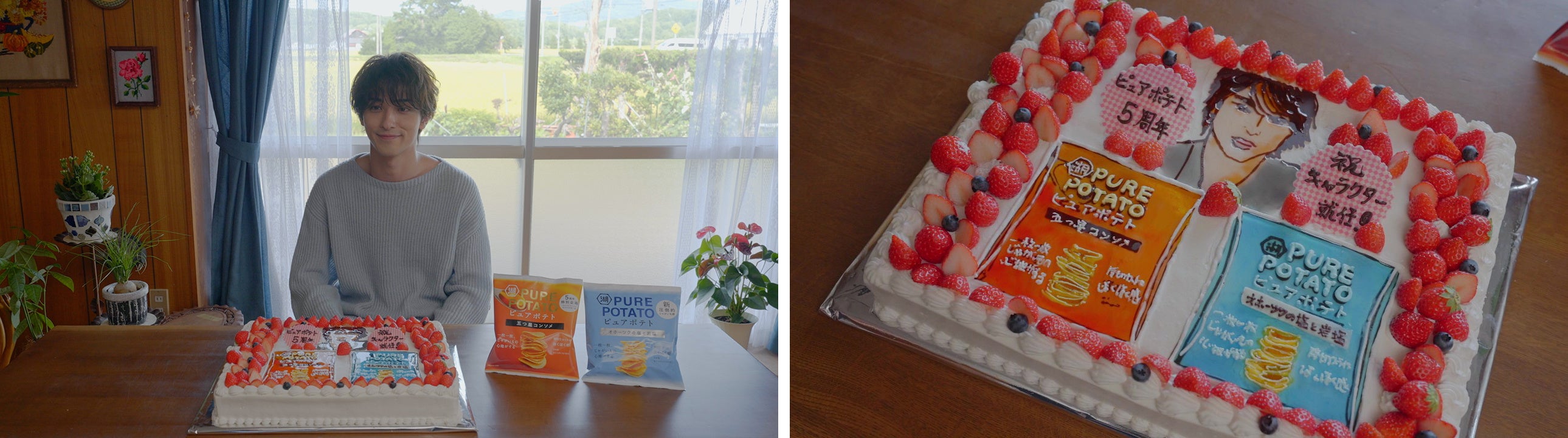 ピュアポテト5周年記念と横浜流星さんのCMキャラクター就任をお祝いするサプライズケーキに感動!「記念すべき年にCMに出演でき嬉しい」と笑顔