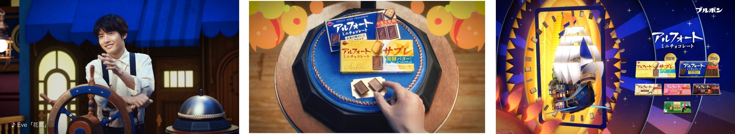 また、人気急上昇中のアーティストEveさんを迎え、アルフォートを連想させる歌詞(青や船)やCMの世界観に合わせた書き下ろしの楽曲「花嵐」が、CMを盛り上げます。
