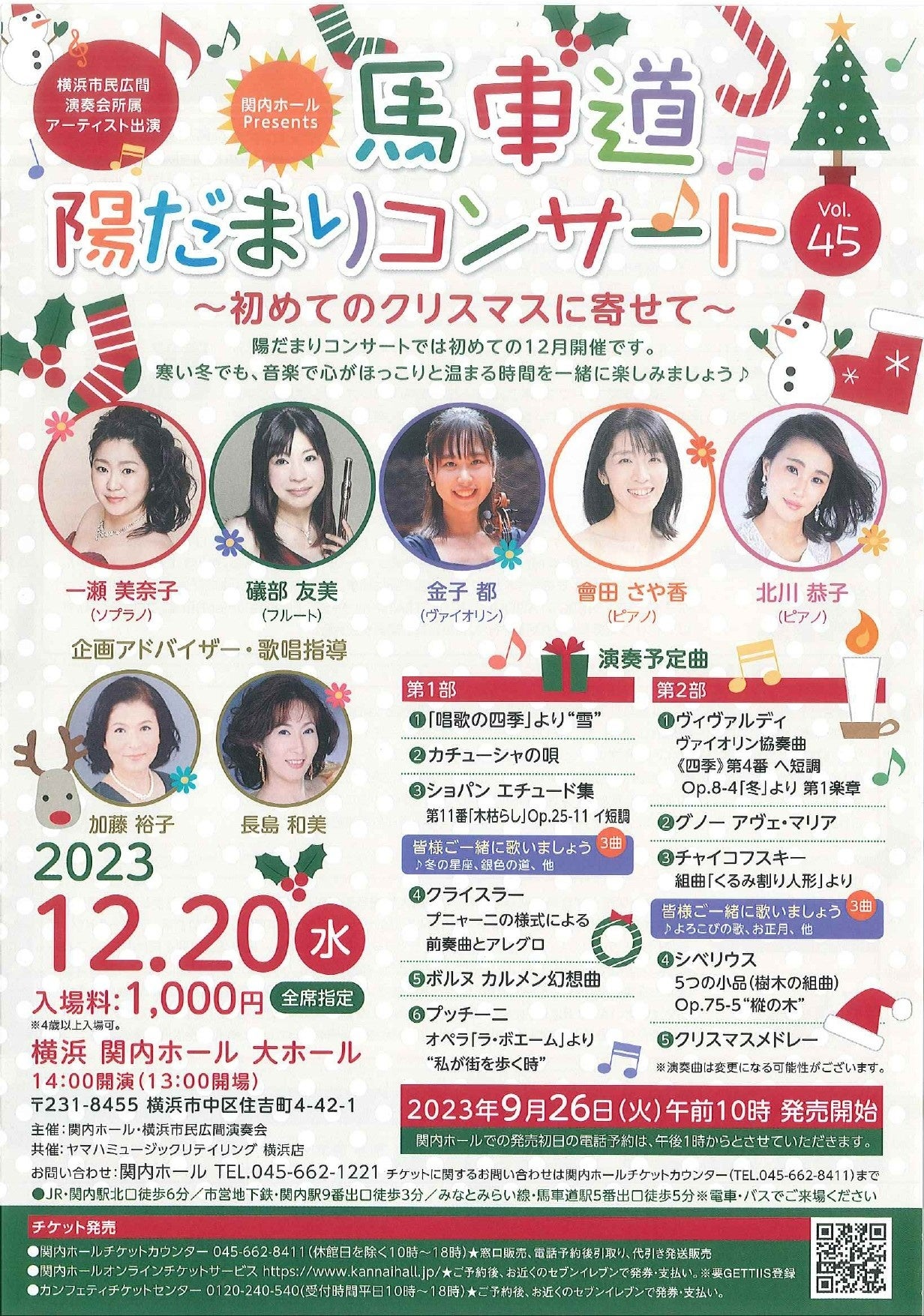 ◆公演名 馬車道 陽だまりコンサートVol.45 ~初めてのクリスマスに寄せて~