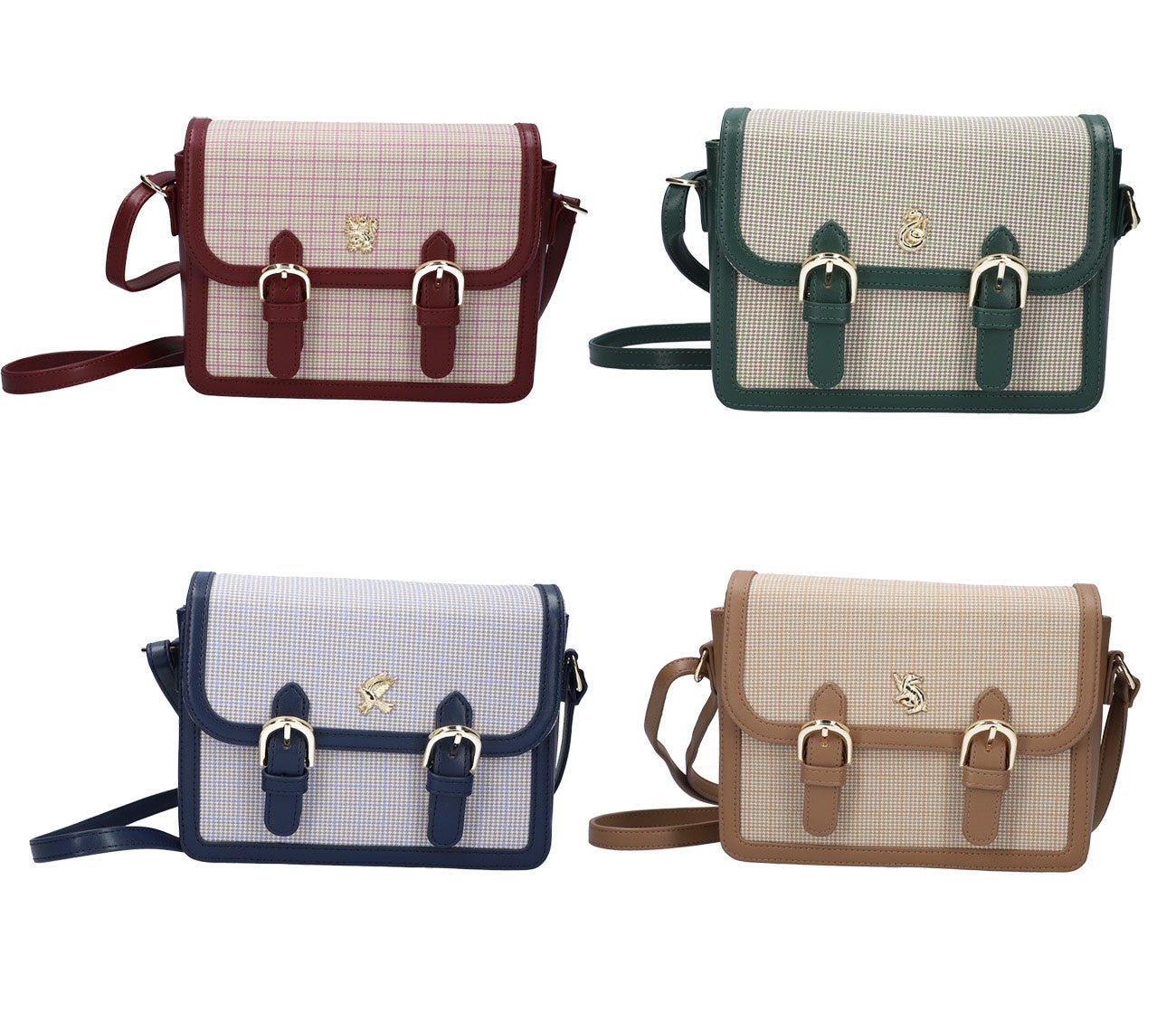 新商品のマルチカードケースと揃えて使うのにおすすめな、「ハリー・ポッター 寮生チェックシリーズ サッチェルショルダーバッグ」(全4種)。各寮をイメージしたカラーリングで、マルチカードケースとお揃いのデザインです。マチ付きで肩からしっかりとかけられます。