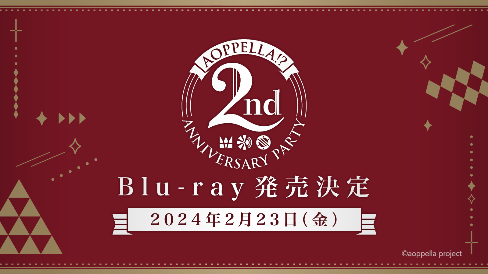 2023年5月27日(土)28日(日)に横須賀市文化会館にて行われた『アオペラ -aoppella!?- 2nd Anniversary Party』のダイジェスト映像が収録された、Blu-rayの発売が2024年2月23日(金)に決定しました!