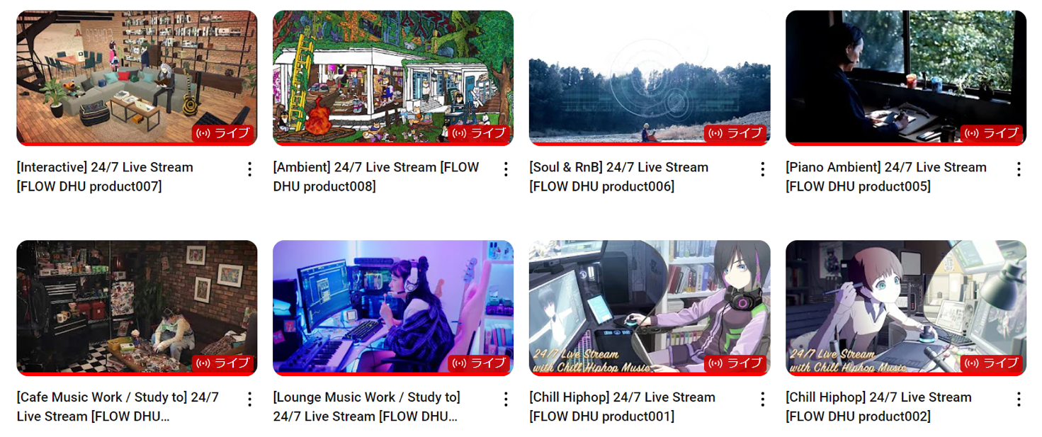 「FLOW DHU」はデジタルハリウッド大学(DHU)が運営するYouTubeチャンネルです。24時間配信のライブストリーミングで、クリエイティブな集中時間を応援します。