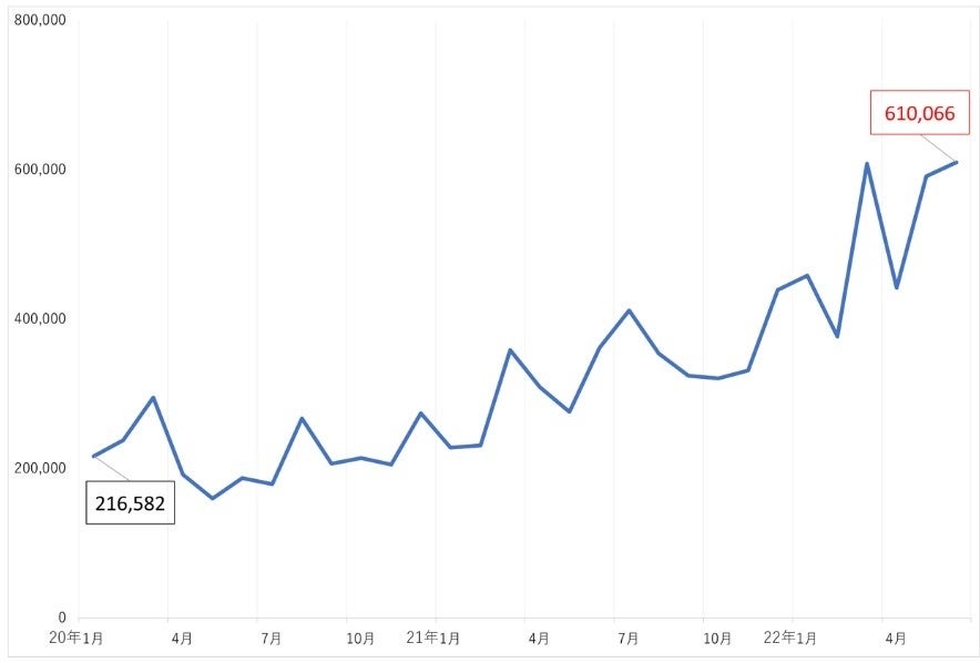 <サウナ投稿数の推移 2020.1~2022.6 X(旧Twitter)調査>