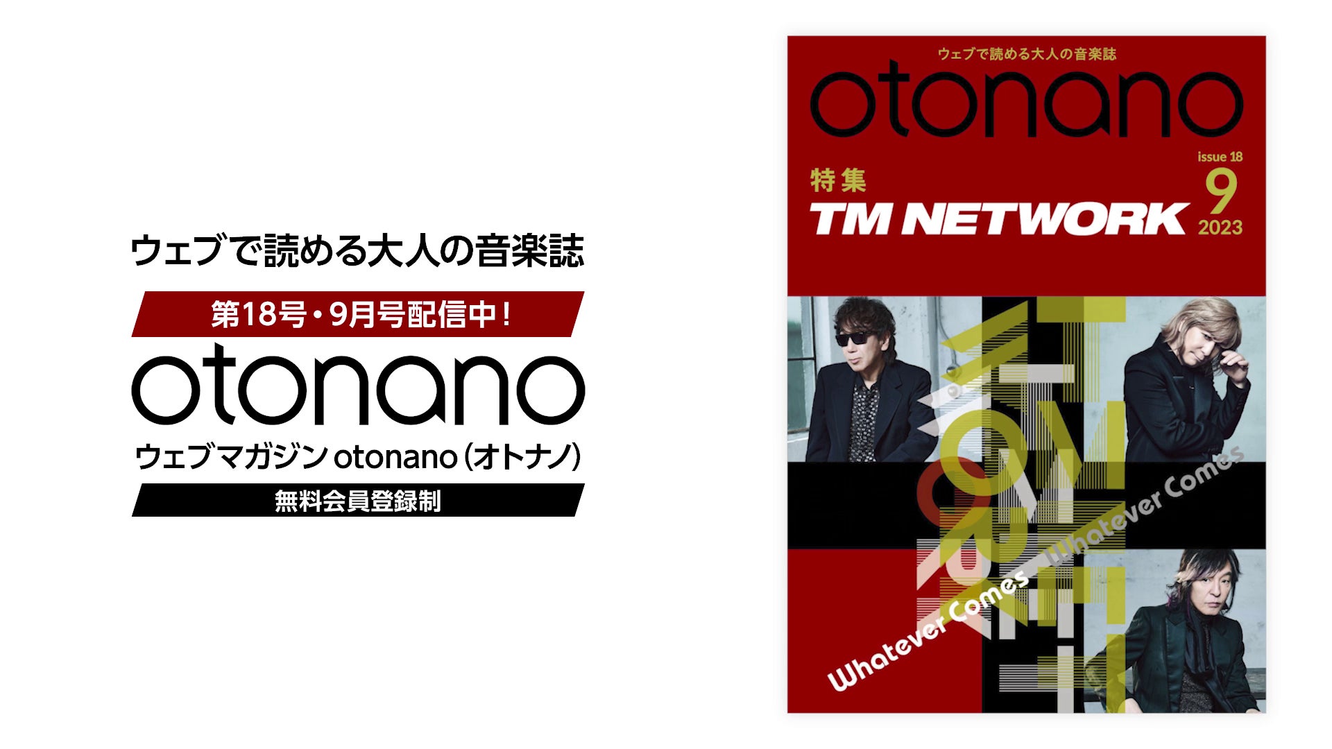 ウェブマガジン「otonano」は毎月ひとつの特集テーマを決め、そのテーマに沿ってアーティストや関係者インタビュー、著名人コラム、作品徹底検証、過去の音楽誌のアーカイヴなど様々な記事を公開。平日は毎日更新し、月末にはウェブ上で一冊の音楽誌(ウェブマガジン)が完成する。VOL.18=9月号の特集は「TM NETWORK」。『劇場版シティーハンター 天使の涙(エンジェルダスト)』のオープニングテーマ「Whatever Comes」リリース記念号として、ここでしか読むことが出来ないTM NETWORKの最新インタビュー、ドキュメンタリー、レビュー、プレイリスト企画を展開した。