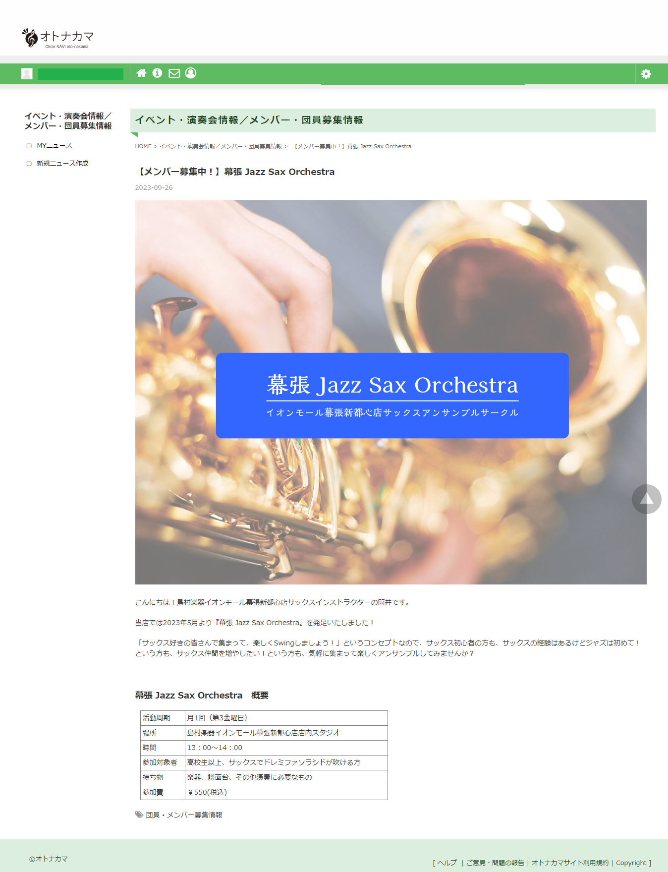1.自身が主宰または所属するアマチュア音楽サークル(バンド・吹奏楽団・オーケストラ・コミュニティ他)の活動状況をサイト上で発信することができます。