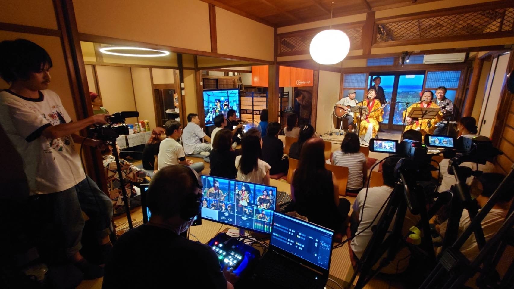 このライブの特長は、リアルに古民家会場に来られた方だけのものではなく、パブリックビューイングをバーチャル会場で行ったことです。