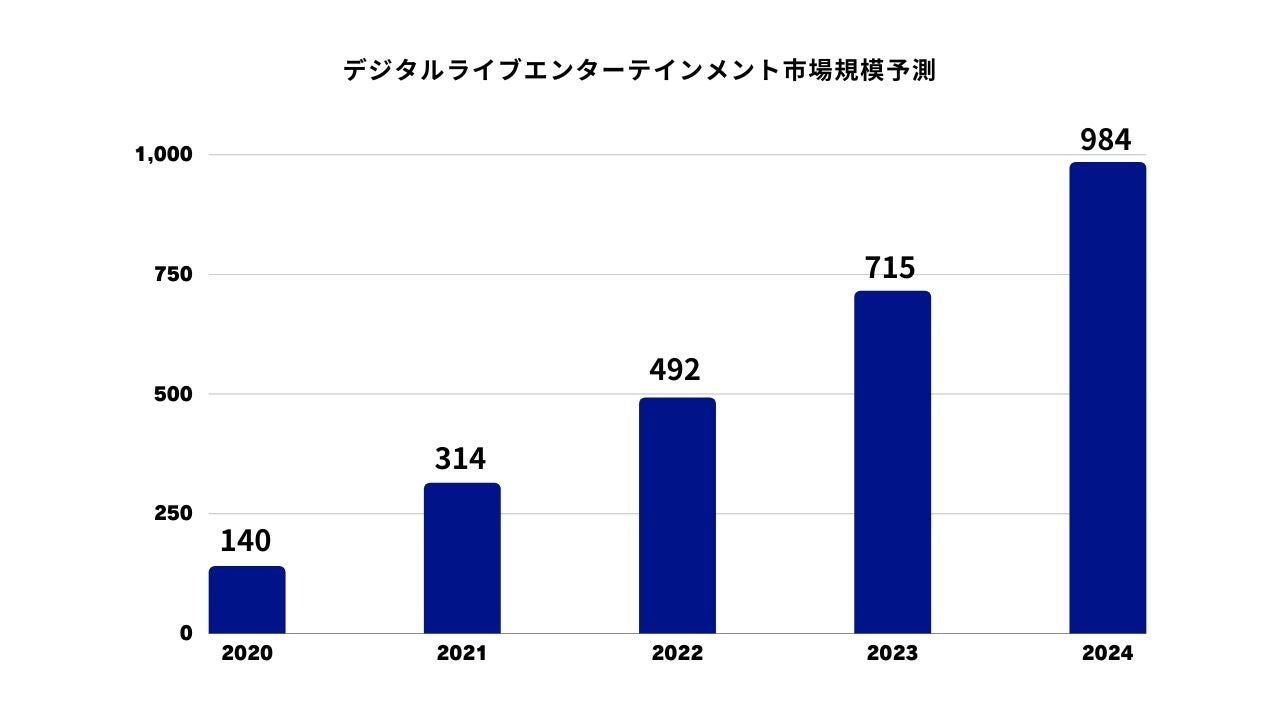 ※2 デジタルライブエンターテインメント市場規模は急拡大。2023年に700億円超、2024年には約1000億円へ(https://cyber-z.co.jp/news/research/2020/0730_9838.html)