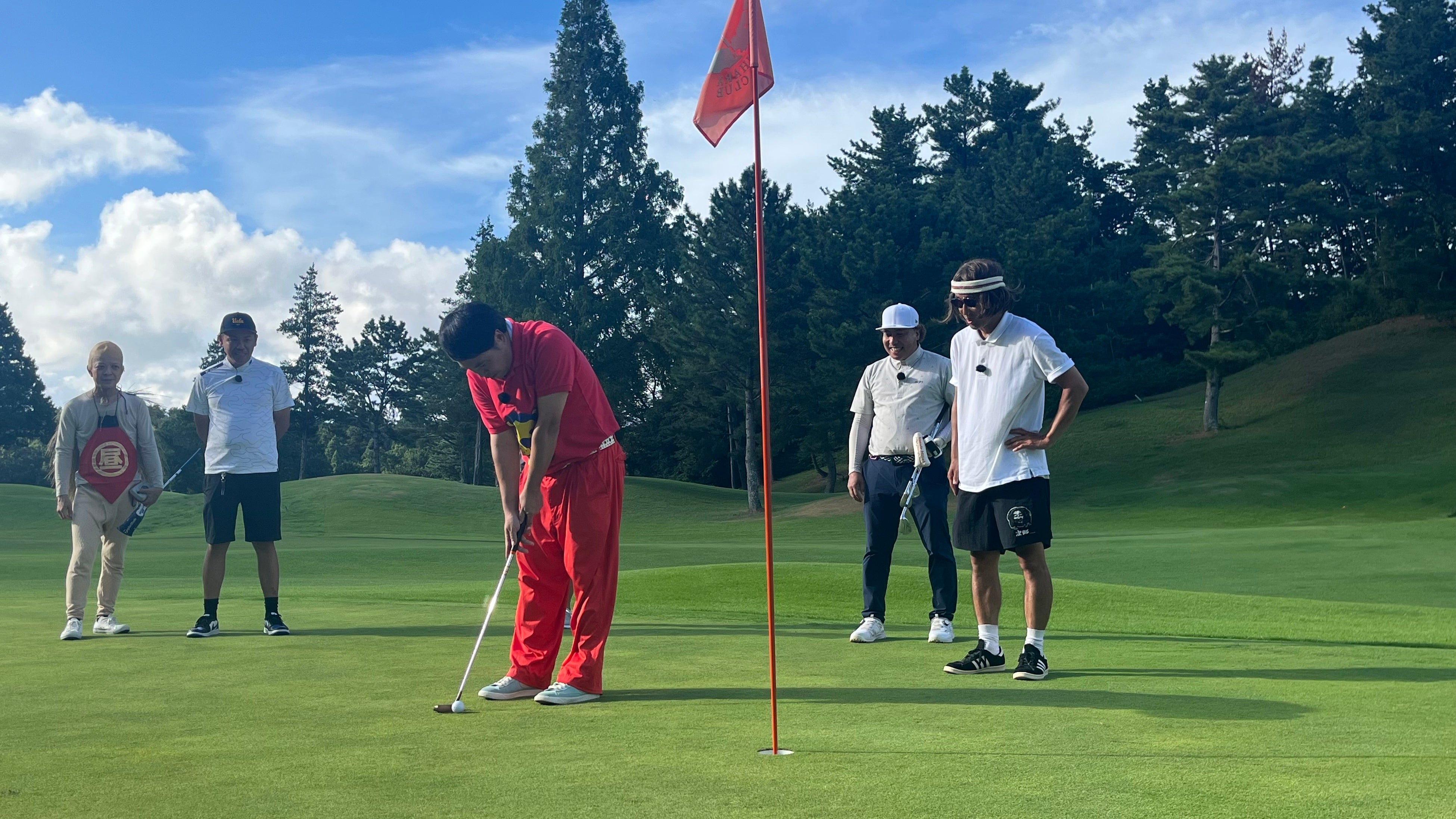 あるホールでは、タカがショートパットでガチガチに緊張……顔をこわばらせて爆笑をかっさらいます。一方、うまくいかない一打があったトシには、佐々木プロがアドバイスを送るなど、学びながら、楽しみながらラウンドを回ります。