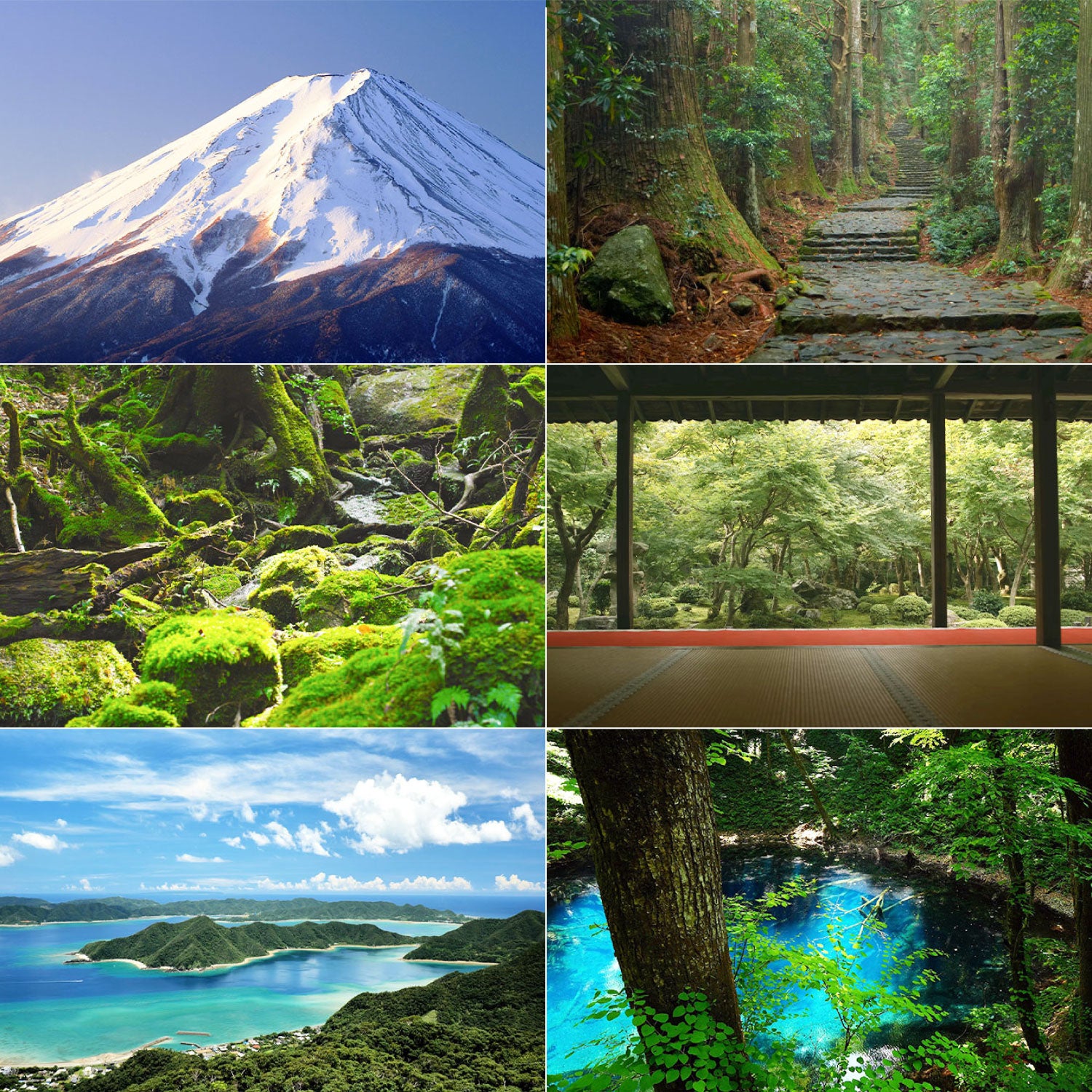 富士山・熊野古道・屋久島・京都・奄美大島・白神山地