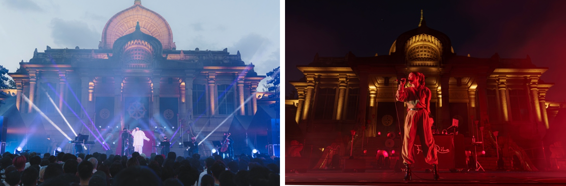 1組目のアーティストはSNSを中心に人気を集める新世代シンガーyama。今回、築地本願寺のイベントということでKeyボード+ストリングスのアコースティック編成で、普段のLiveとはまた違う特別な演出を披露し、観客を魅了した。続く2組目のアーティストは、数々の音楽チャートを席巻し今注目を浴びるFurui Riho。パフォーマンス頭、ゴスペルコーラスで鳥肌鳴る歌唱からスタートし、終始、グルーヴ感なるpopなサウンドで熱いステージを披露した。