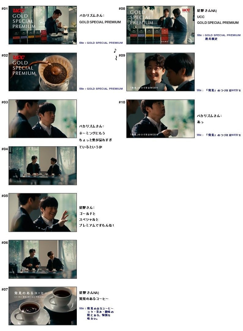 『UCC GOLD SPECIAL PREMIUM「いっしょに、発見」篇』ストーリーボード(15秒)