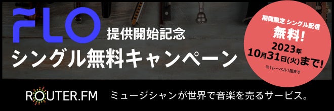 『FLO』への楽曲データ提供開始を記念して、『ROUTER.FM』では2023年10月3日(火)~2023年10月31日(火)まで、シングルプラン無料キャンペーンを実施いたします。キャンペーン期間限定で、配信プラン[シングル]の配信登録料(通常1,380円)が、1人1曲無料! 年会費が存在しないため、キャンペーン中にご登録いただいた楽曲は、キャンペーン期間終了後も追加料金なしでそのまま半永久的に配信することが可能です。