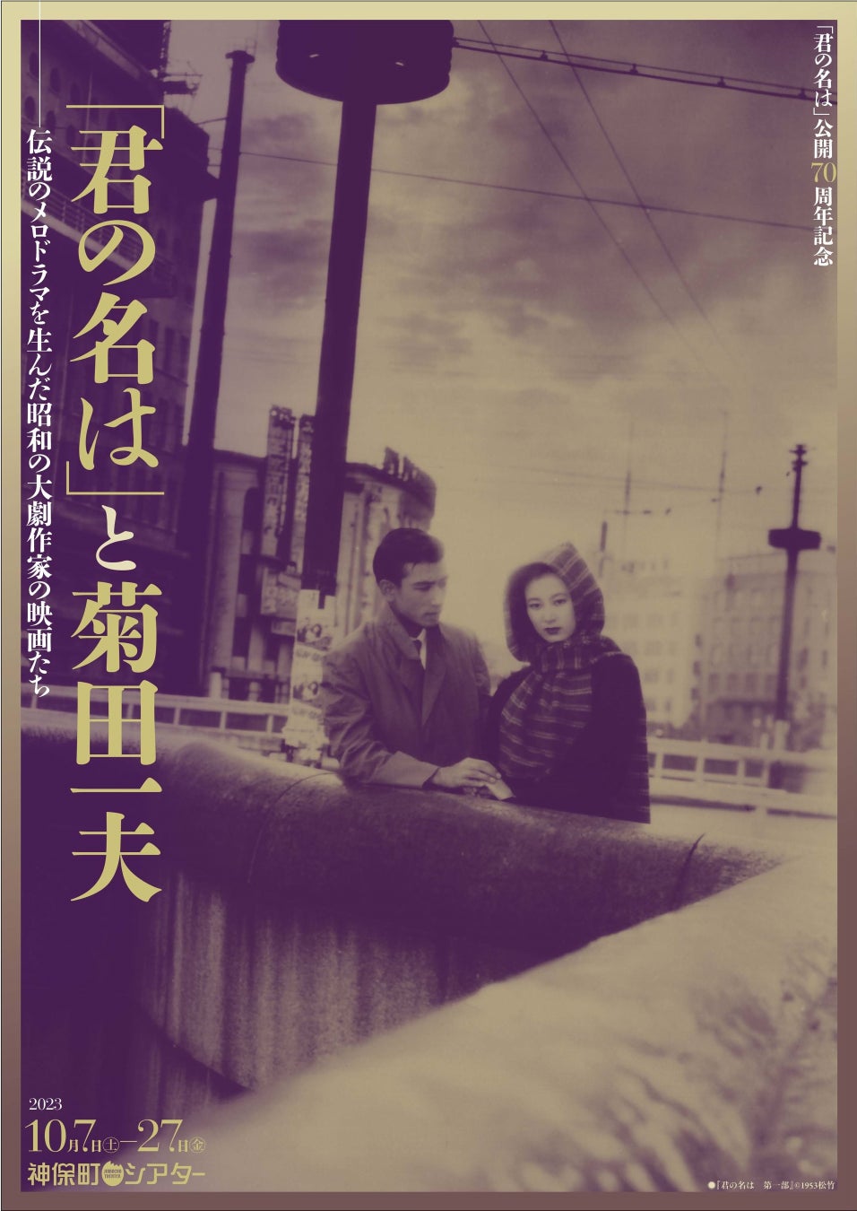 10月7日(土)からは、映画『君の名は』の公開70周年を記念し、菊田一夫の原作による映画作品の特集上映を開催します。