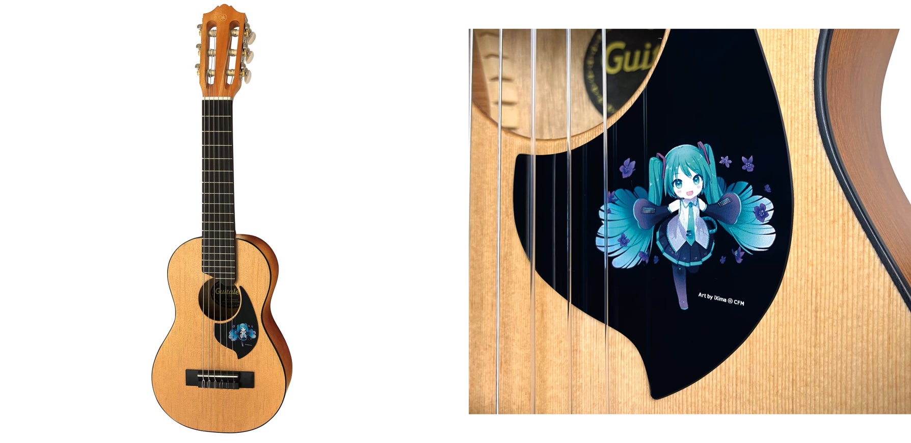 ギタレレ「GL1」は、ウクレレのようなコンパクトなボディサイズ(全長698mm)のナイロン弦ギターです。どこにでも持っていける手軽さと、本格的なアコースティックサウンドを兼ね備えています。『GL1 MK16th』は、「GL1」のピックガードにiXimaさん描き下ろしイラストをプリントした、初音ミクコラボレーションモデルです。