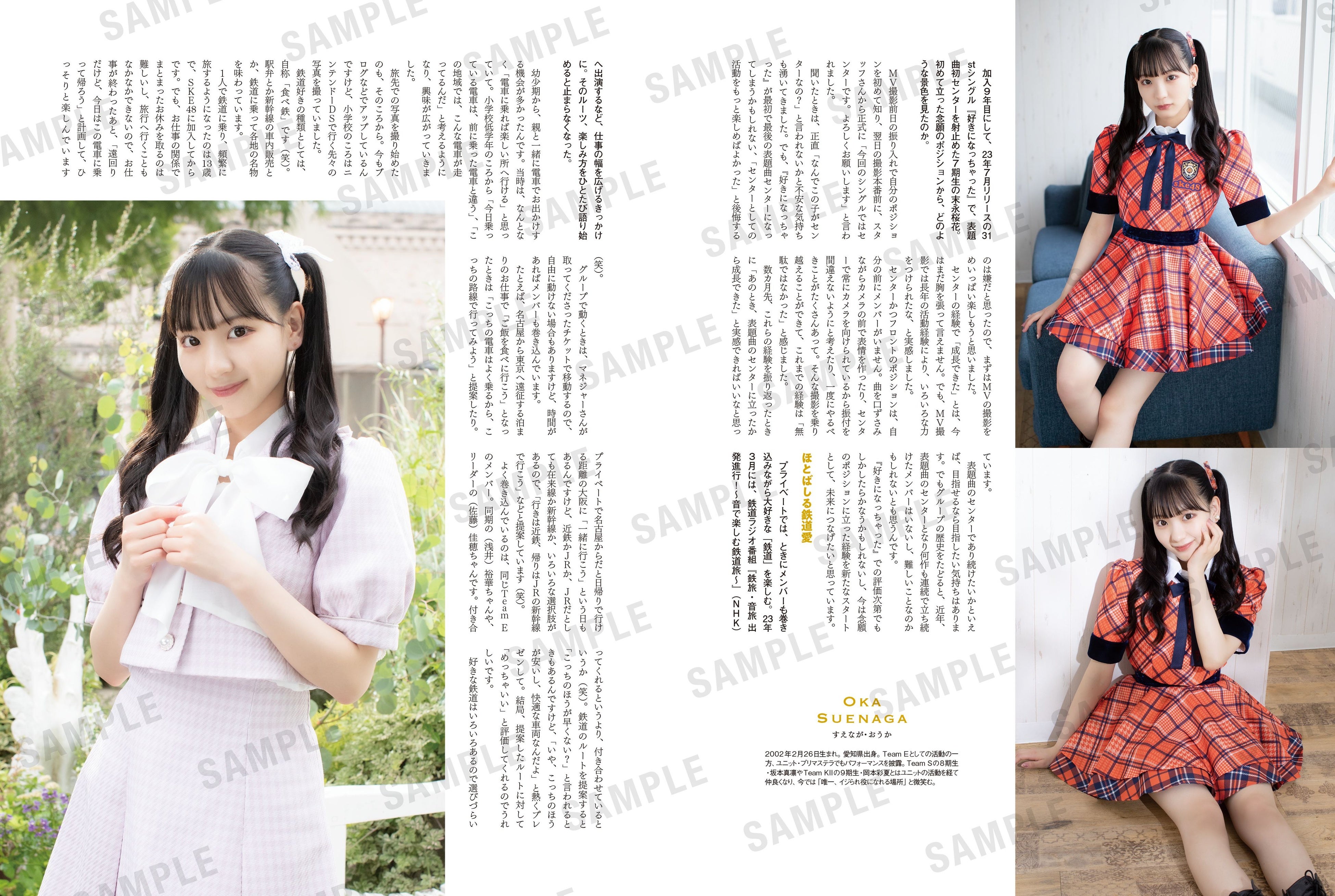 2期生から11期研究生まで、計53名の個人インタビューを多数の撮りおろし写真と共に掲載します。31stシングル「好きになっちゃった」で初のセンターに立った末永桜花は、この楽曲にかける意気込み。熊崎晴香はソロライブ開催、1st写真集発売、中日ドラゴンズの応援番組のアシスタント就任など幅広いフィールドでの活躍について。佐藤佳穂はTeamEのリーダーに抜てきされての葛藤など、各メンバーならではのエピソードや思いが満載です。