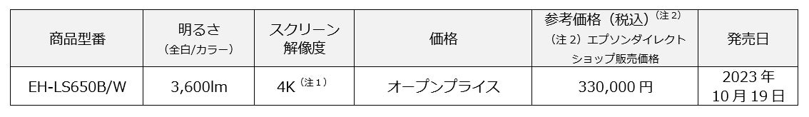 エプソン販売株式会社は、ホームプロジェクター「dreamio(ドリーミオ)」の新商品として、『EH-LS650B』(ブラックモデル)、『EH-LS650W』(ホワイトモデル)の1機種2モデルを、2023年10月19日より発売します。