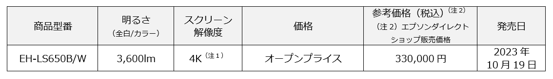 エプソン販売株式会社は、ホームプロジェクター「dreamio(ドリーミオ)」の新商品として、『EH-LS650B』(ブラックモデル)、『EH-LS650W』(ホワイトモデル)の1機種2モデルを、2023年10月19日より発売します。