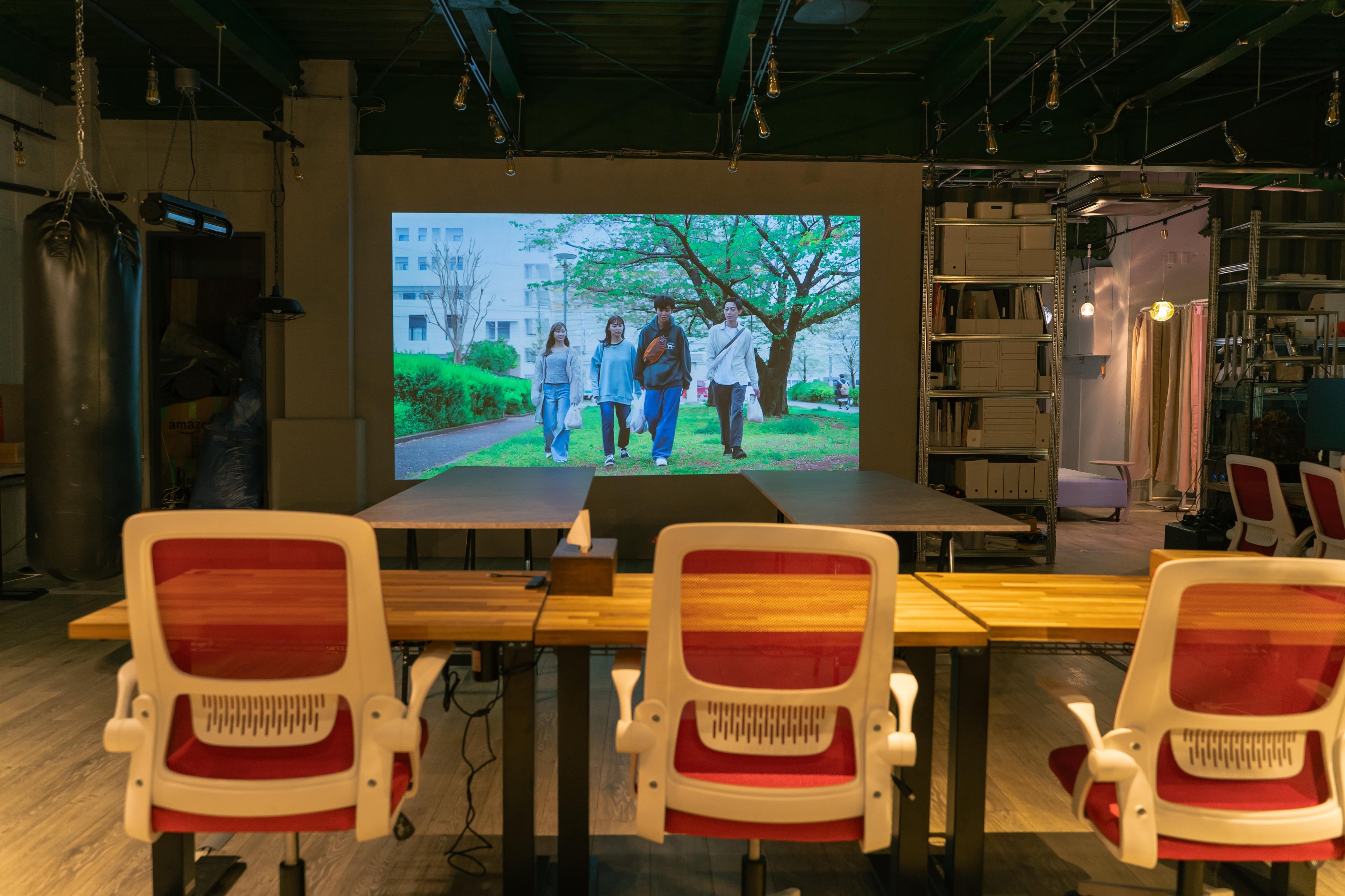 制作スタッフを一同に集めて、大きなスクリーン越しに映像のチェックすることが可能で、他にもイベント等が実施できる空間があります。
