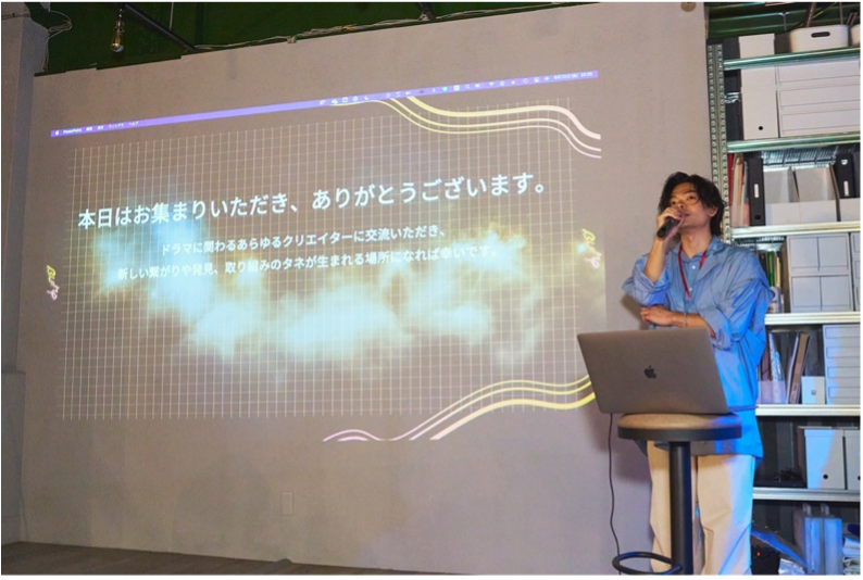 代表の澤村による挨拶では、まだサービス自体が立ち上がる前から一緒に歩んできてくれた関係者やクリエイターの皆様への謝意が述べられました。知名度も資金も無い一介のスタートアップに協力を買って出てくれたことに恩義を抱くと同時に、絶対にBUMPを成功させ、「創造に挑戦できる世界へ」を実現するためこの事業にかける熱い思いをプレゼンしました。