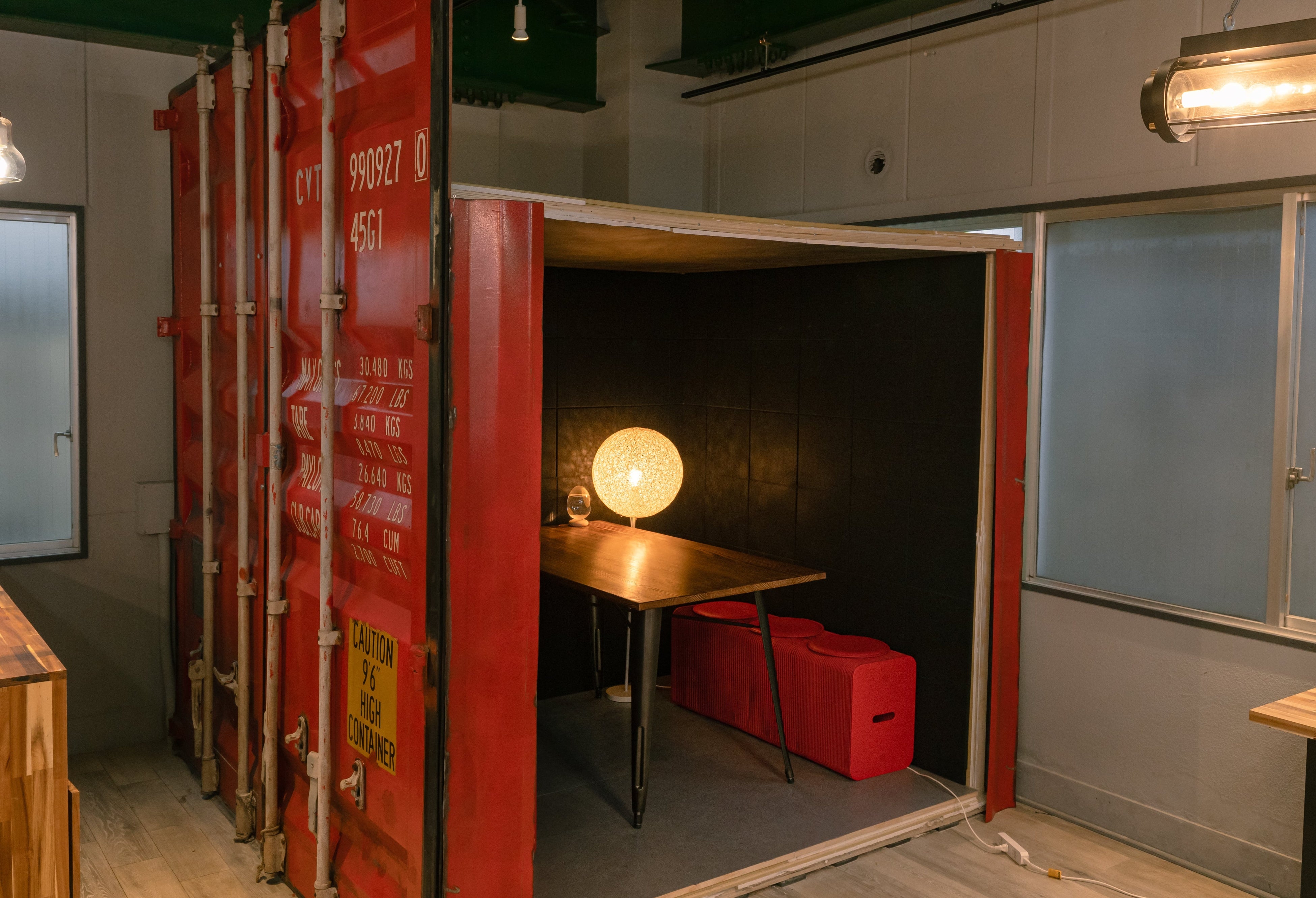 執務スペースの奥に位置する鮮やかな赤色のトタン箱は、四方が吸音材で覆われており、外部の騒音を完全に遮断します。ナレーションの収録や、極秘の内容を含む外部との会議にも最適です。