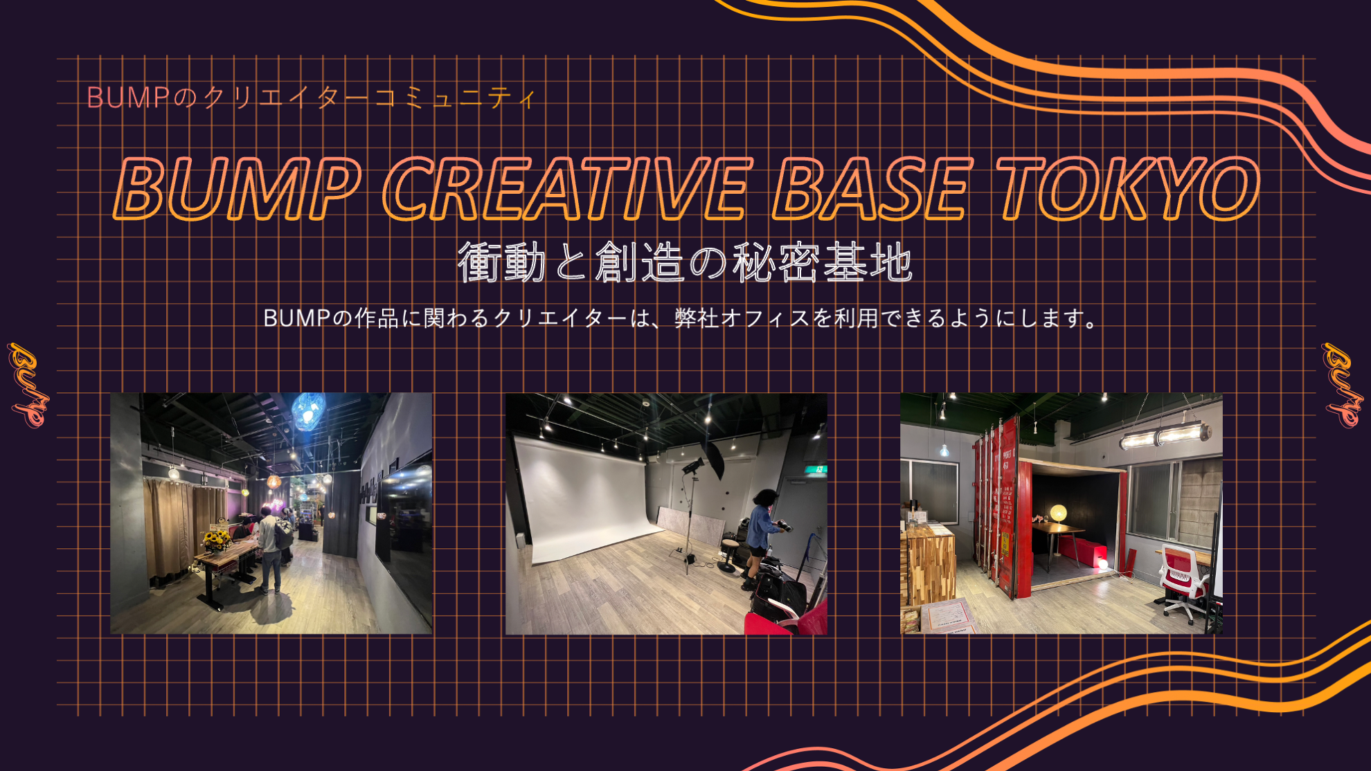 オーディションには、新オフィス「BUMP CREATIVE BASE TOKYO(衝動と創造の秘密基地)」を活用してまいります。