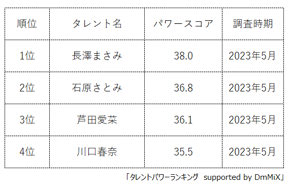 本ランキングは、2023年5月度に実施したタレント調査データ(一部過去実施データ)を利用し、タイトルに応じてランキング形式でまとめたものです。