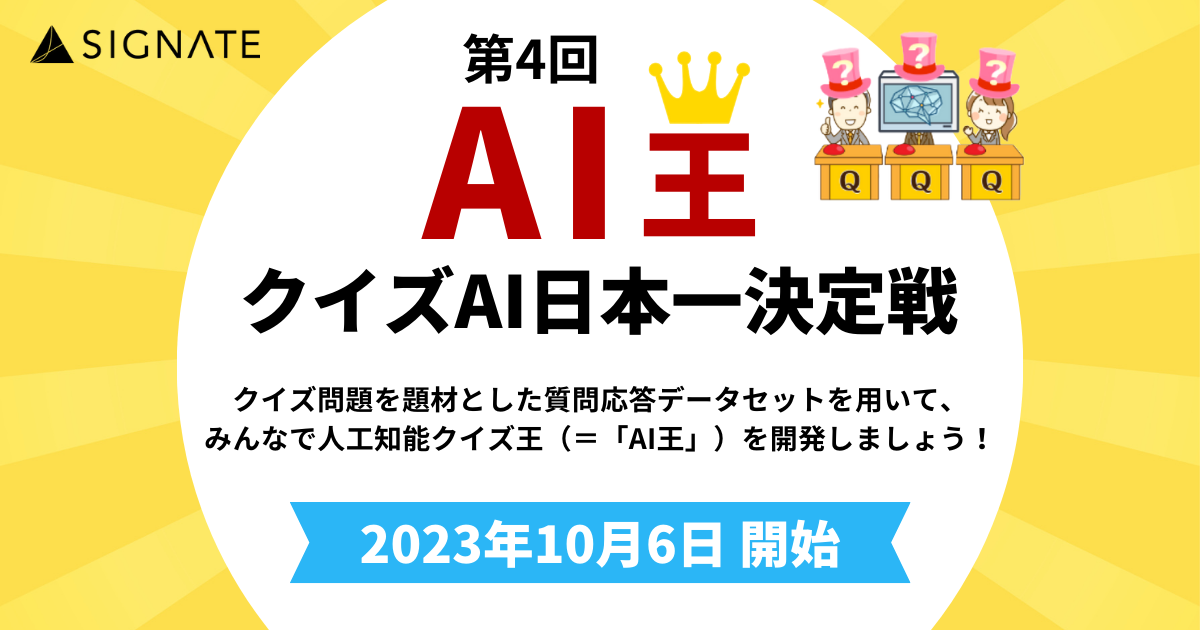 クイズAI日本一決定戦「第4回 AI王」は、日本の(日本語を対象とした)質問応答研究を促進させることを目的として2020年から開始した大会です。クイズは単なるエンターテインメントを超え、「介護」「教育」「地方創生」など様々な応用の可能性が見出されています。クイズ問題を題材とした質問応答データセットを用いて、みんなで人工知能クイズ王(=「AI王」)を開発しましょう!