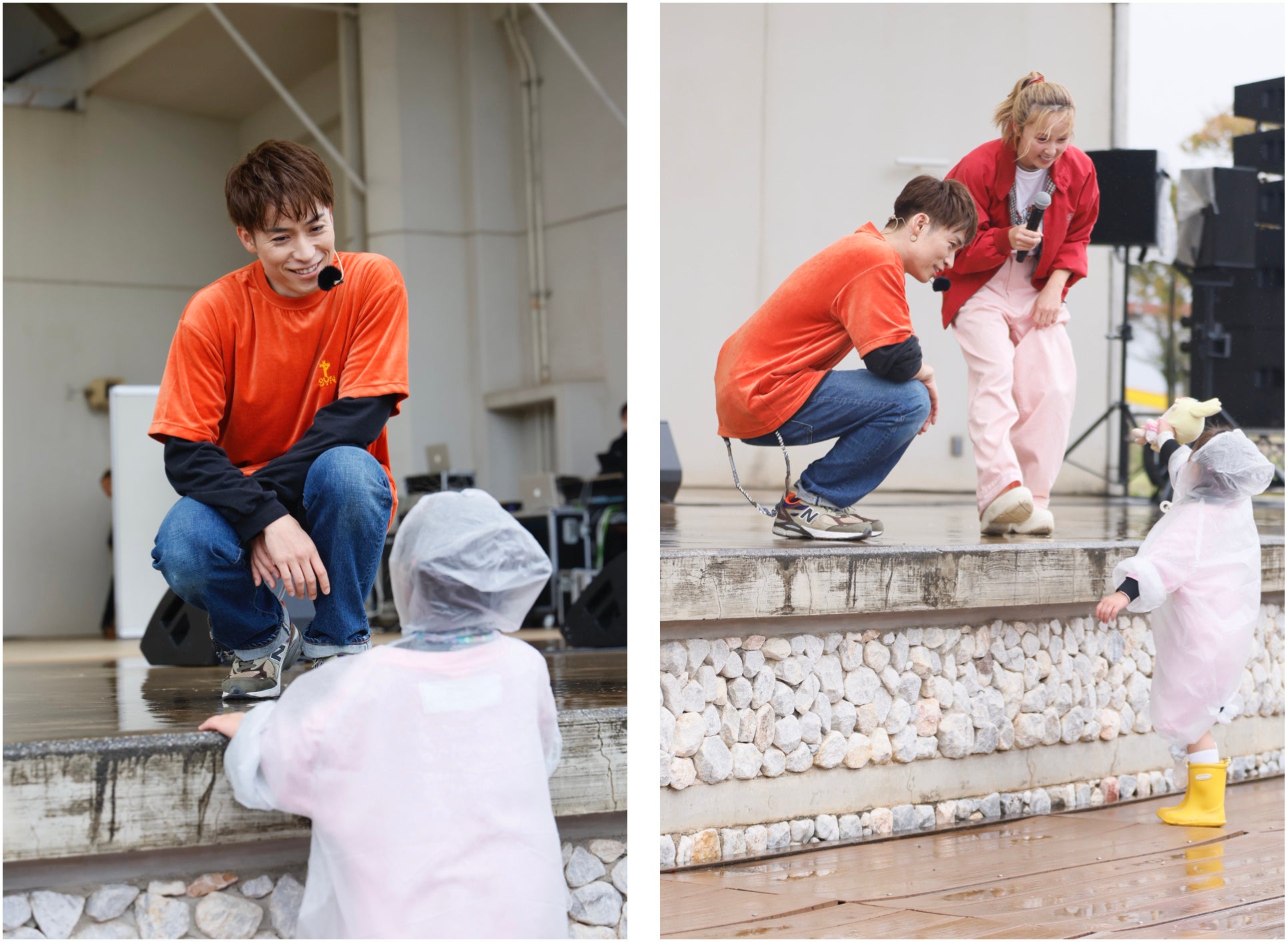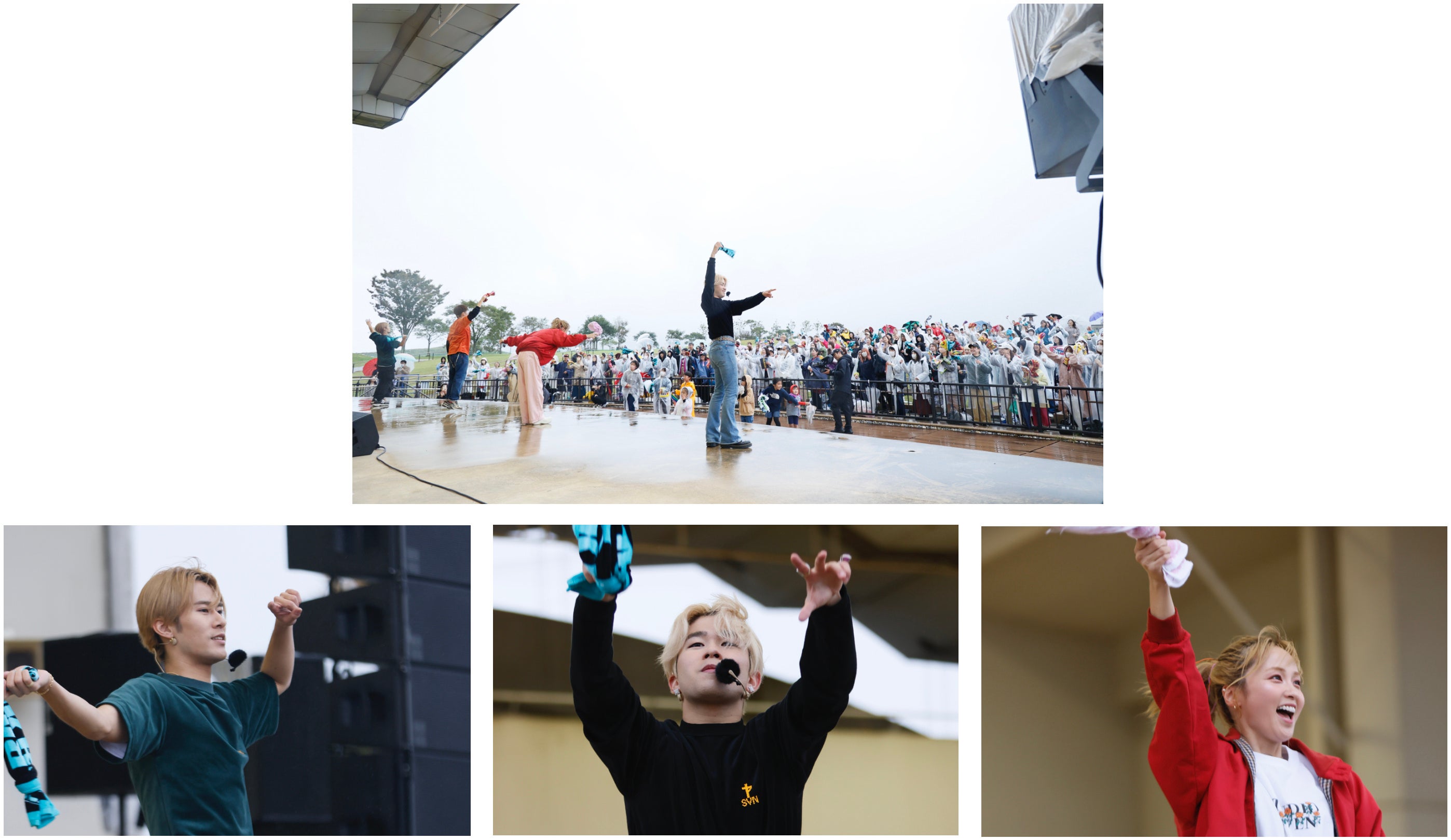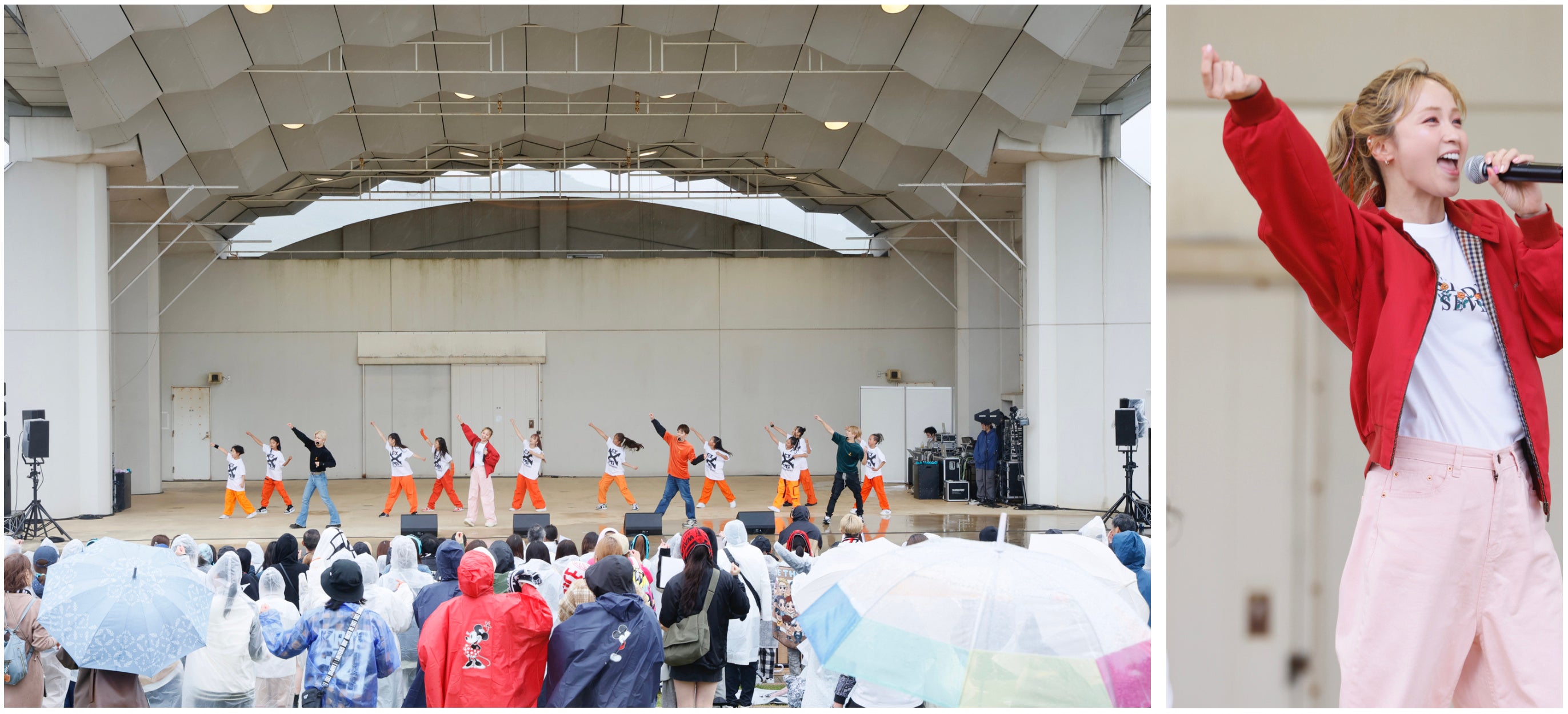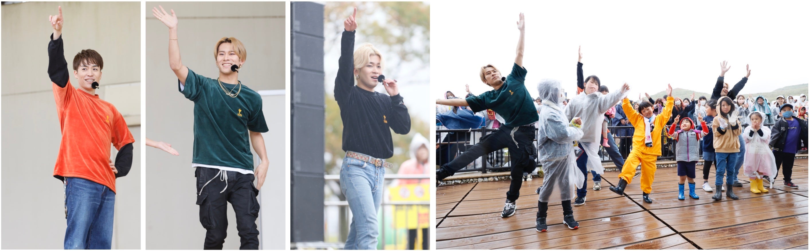 雨が降り続ける中、会場いっぱいに駆けつけた来場者に向けて、EXILE TETSUYAは「待たせてごめんね!帰った時に風邪をひかないように、そして最後はこの雨空に虹が掛かるようなステージになるように、無理のない範囲で体を動かしていきましょう!」と、奥田力也は「昨日はTGC北九州のステージでパフォーマンスをさせていただいたのですが、今日はこうしてキッズと踊れることを本当に楽しみにしていました!最高の一日にしましょう!」と呼びかけ、1曲目に披露したEXILE B HAPPYの「MORNING SUN」のダンスレクチャーをスタート。EXILE TETSUYAが「最後のポーズはどうしよう…」と悩んだ末に、北九州の“Kポーズ”に決定!音楽がスタートすると、EXILE TETSUYA、BALLISTIK BOYZの深堀未来、奥田力也がキッズエリアに降りて一緒にダンスを楽しみ、最後は会場一体となって“Kポーズ”を決めました。