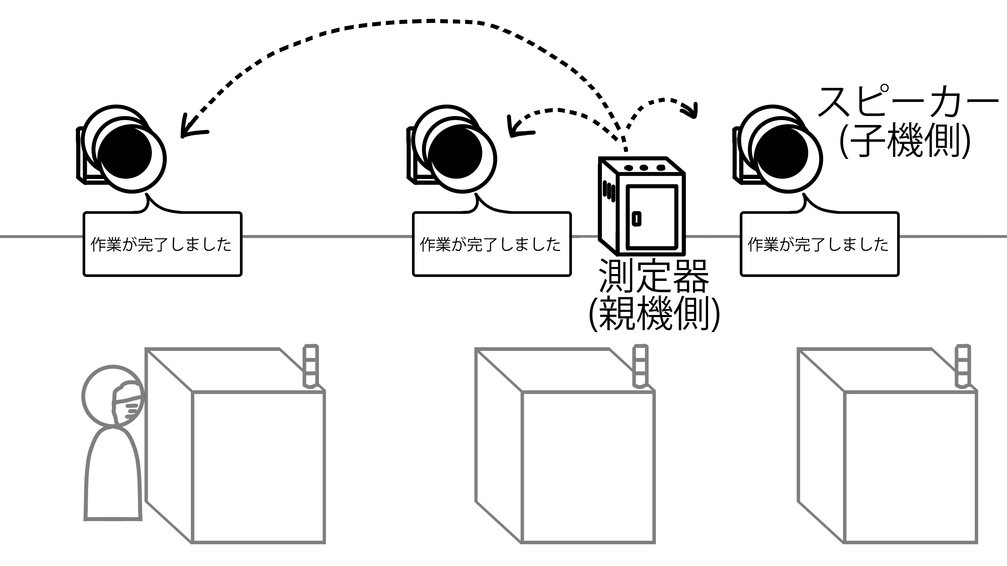 すでに多くの採用実績がございます。ある半導体工場では、測定器から出力される音声ガイダンスを工場内に設置した6台のスピーカーへ無線で転送。これまで測定器周辺でしか聞く事ができなかった音声ガイダンスを、工場のどの場所にいても聞く事ができるようになりました。ワイヤレスなので作業員の邪魔になる事もなく、移動や増設にも柔軟に対応できる点を高くご評価頂きました。