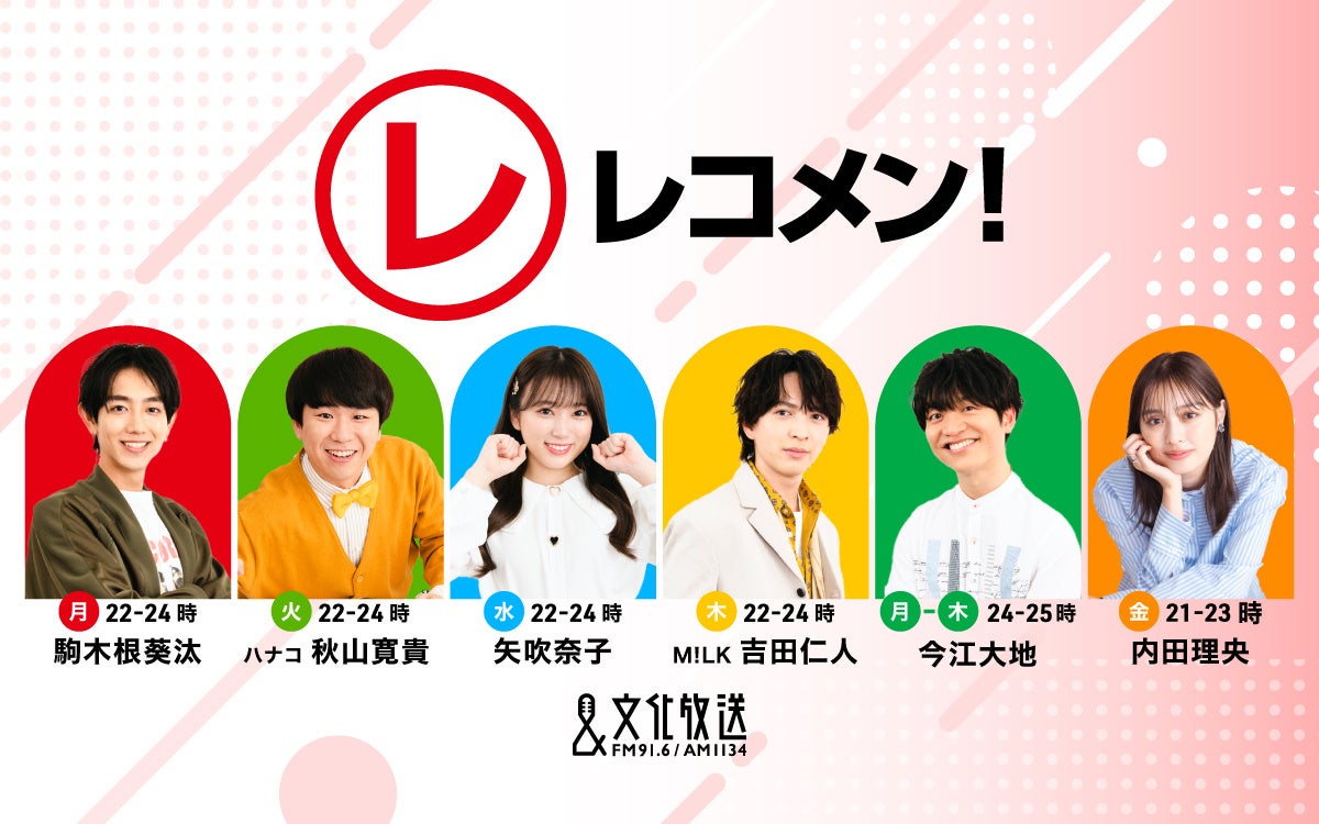 「レコメン!秋のお笑い祭り」と題して、期間中、人気お笑い芸人がゲスト出演します。16日(月)きつね、17日(火)コント村・ゾフィー 上田航平、かが屋 加賀翔、18日(水)ジェラードン、20日(金)おかずクラブが登場。