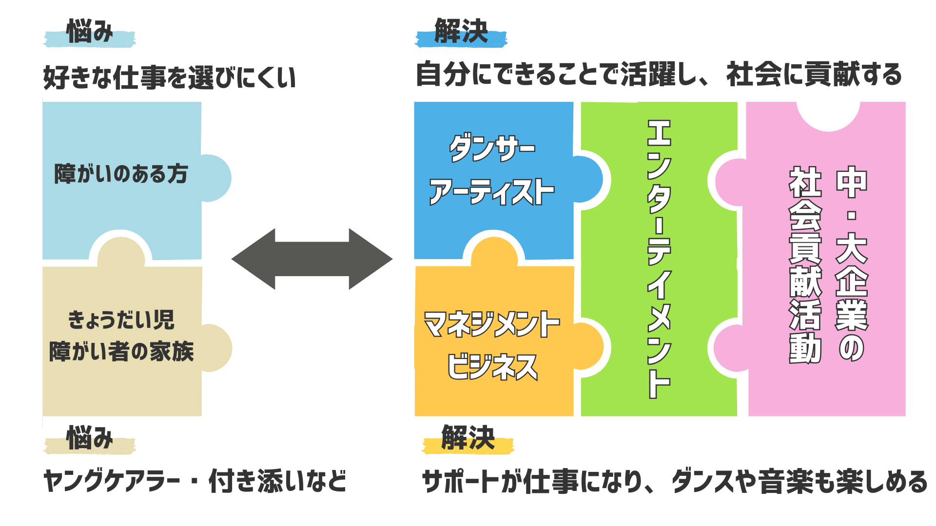 選べる職業が少ない。夢を追いたいが、挑戦する機会が少ない。障がいがあるからこそ素晴らしい才能があっても、それを表に出すための環境やサポーターが少ない。
