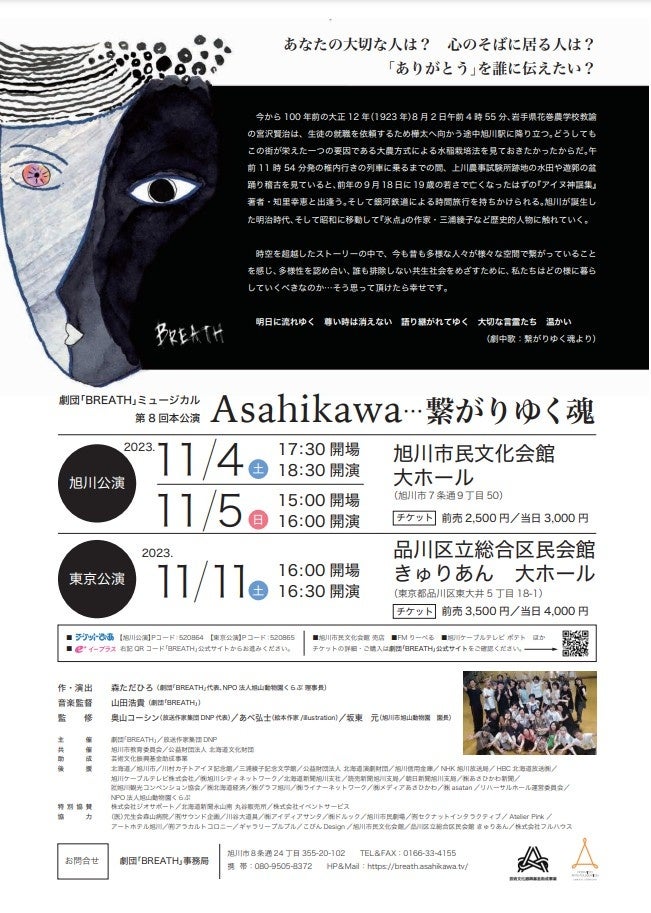 平成8年、官民一体型モデル団体の「BREATH」は『この街に自分達の手で彩(いろ)をつけていきたい』とう想いで、音楽の街.旭川に見合うミュージカルを完全オリジナルで、生きる喜びをテーマに過去7回の公演を行い、約25000人を動員する。