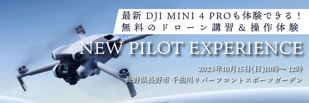 2023年10月15日(日)に長野県長野市で開催されます、無料のドローン講習&操作体験会「NEW PILOT EXPERIENCE」では、このDJI MINI 4 PROが体験機として登場することが決定しました。