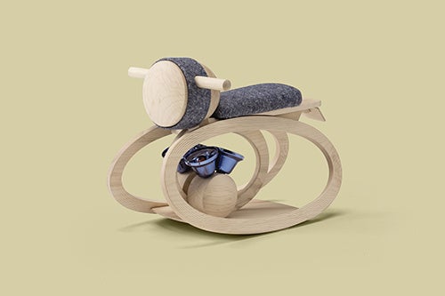 世界最大のデザインイベント「ミラノデザインウィーク2023」でヤマハが“You Are Here”の展示タイトルのもとで発表した“楽器と共に暮らすことが楽しくなる家具のような道具”の作品群の一つです。幼い子どもたちにとって初めての「楽器とバイク、2つのヤマハ」との出会いになることを願ってデザインされました。またがって体を揺らすことで、エンジンに見立てたベルの音がやさしく鳴り響きます。