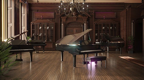 100年の歴史を持つ建物の2階にある、約30台のアコースティックピアノを展示するショールームでは、高い天井と建築当時のままの壁や床の木材が作り出す素晴らしい音響の中で、ヤマハピアノとベーゼンドルファーピアノの音色を体験いただけます。彫刻が施されたオークウッドのパネルやシャンデリアを背景に展示されるピアノは、絵画のようにフォトジェニックであり、多くの観光客やSNSユーザーが訪れて撮影や投稿を行うロンドンの人気スポットになっています。