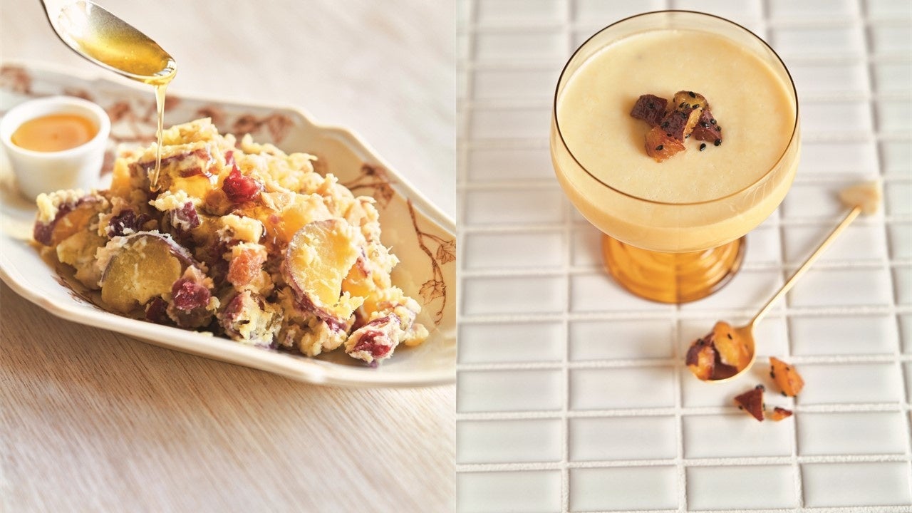 右:大学芋のせ焼き芋レアチーズプリン/©SDP