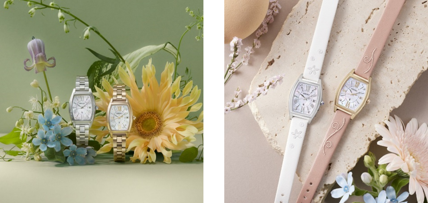 <セイコー ルキア>のコレクション「LUKIA Grow」は、花をモチーフにした商品を展開いたします。今秋の新作では、ブルースター(花言葉:「信じあう心」)とガーベラ(花言葉:「いつも前向き」)をモチーフとした2商品が発売となります。