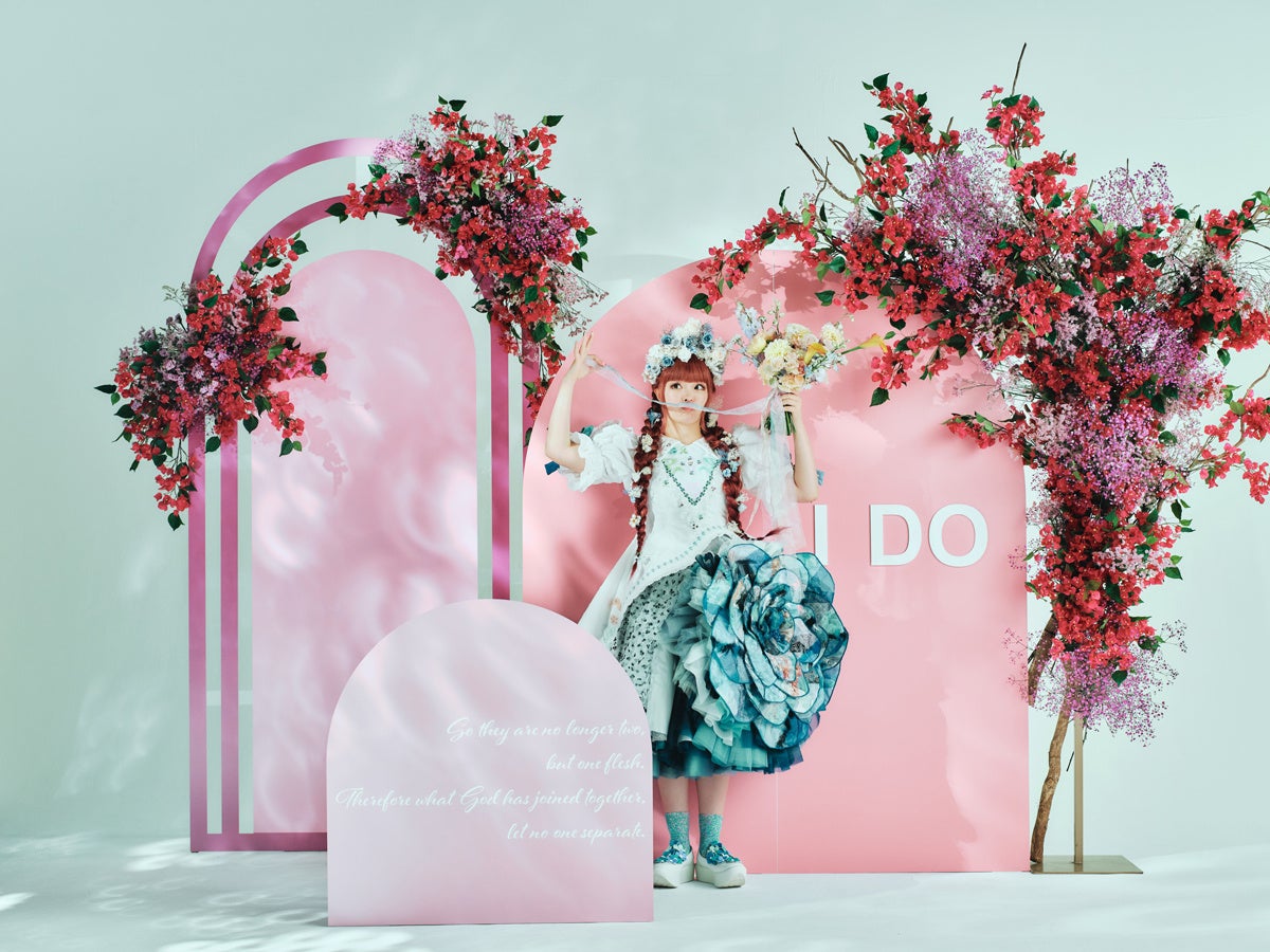 「HIBIYA KADAN WEDDING」では、日比谷花壇が誇るトップフローリスト集団「FLOWER CREATION ROOM(フラワークリエーションルーム)」の精鋭たちと共に、きゃりーが企画から商品化までを共同で開発。日本では珍しいフラワーアンブレラなど、他の人と違った結婚式にしたいトレンドに敏感な新郎新婦にぴったりなウエディングアイテム『Kyary Pamyu Pamyu × HIBIYA KADAN WEDDING “I DO.”』が誕生した。