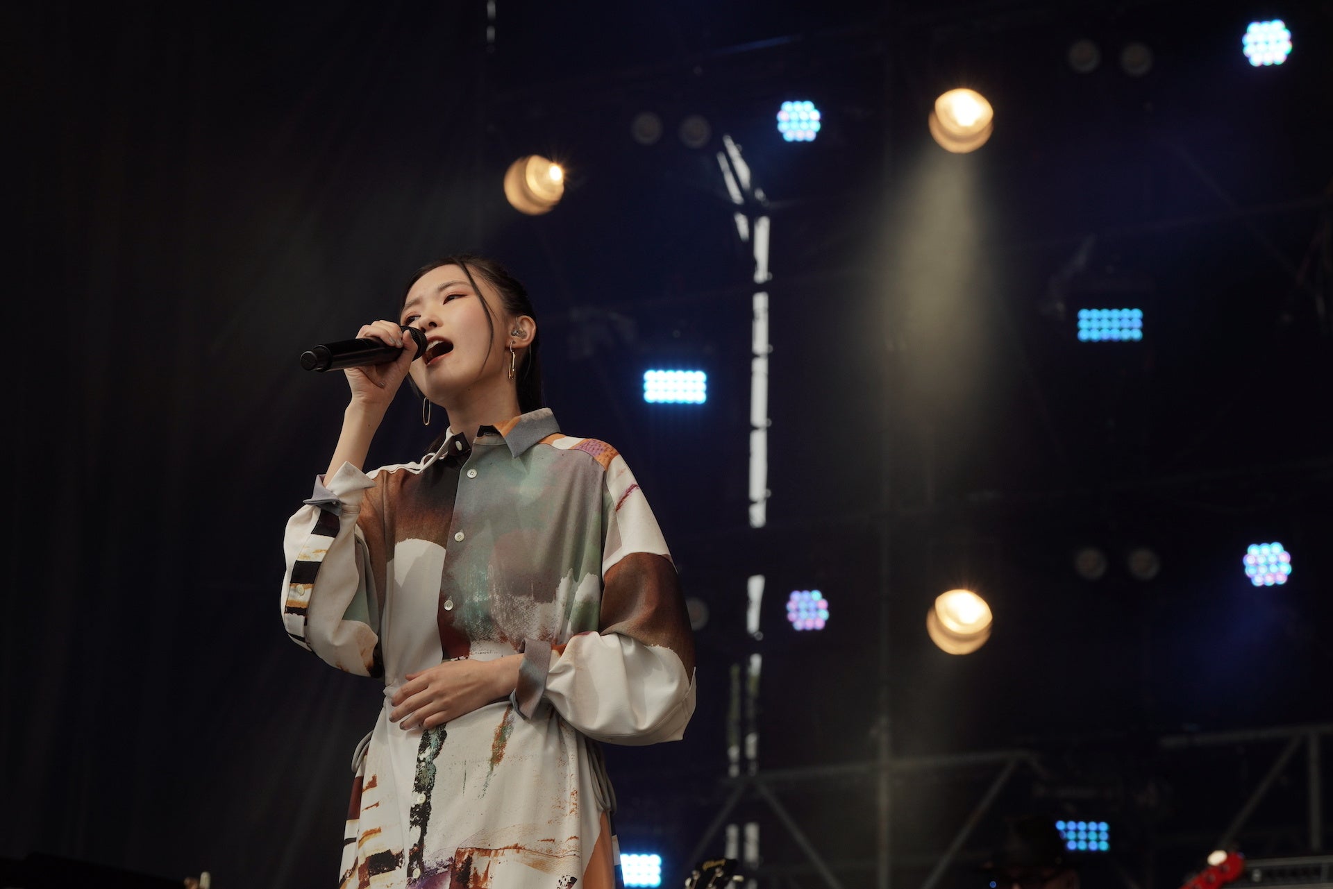 3番手で登場したシンガー・ソングライターの琴音は、フェスが開かれている長岡市の出身。ハウスバンドで鍵盤を奏でる島田昌典と2人だけで登壇し、島田の切ないピアノが印象的な「Love Birds」で静かに幕を開けた。歌唱後のMCで、本間らフェスのために結成されたスペシャルハウスバンドを迎え入れると、「次は私を広く知ってもらうきっかけになった曲」と音楽プロデューサー田中隼人がプロデュースを手掛けた「君は生きてますか」と熱く歌い上げた。2021年に放送されたフジテレビ系月9ドラマ「ナイト・ドクター」のオリジナルナンバーとして起用された同曲に合わせ、肩を揺らしながら楽しそうに聞き入る観客の姿があった。2年ぶりの米フェスは「全く違う景色に見える」と語った琴音は「自分の地元のいろんな場所で歌っていきたい。今日、少しでも良いなと思ってくれたら、また会いに来てください」と呼びかけた。3日間に渡って行われたフェスの様子はリアルタイムでオンラインでの配信も実施。美しい歌声に「琴音さんが歌うと、空気が、空間が、変わる」と声が寄せられたほか、10月29日(日)に東京・渋谷でワンマンライブを行うことを発表すると、「2公演行きます!」「素晴らしい」と称賛されていた。