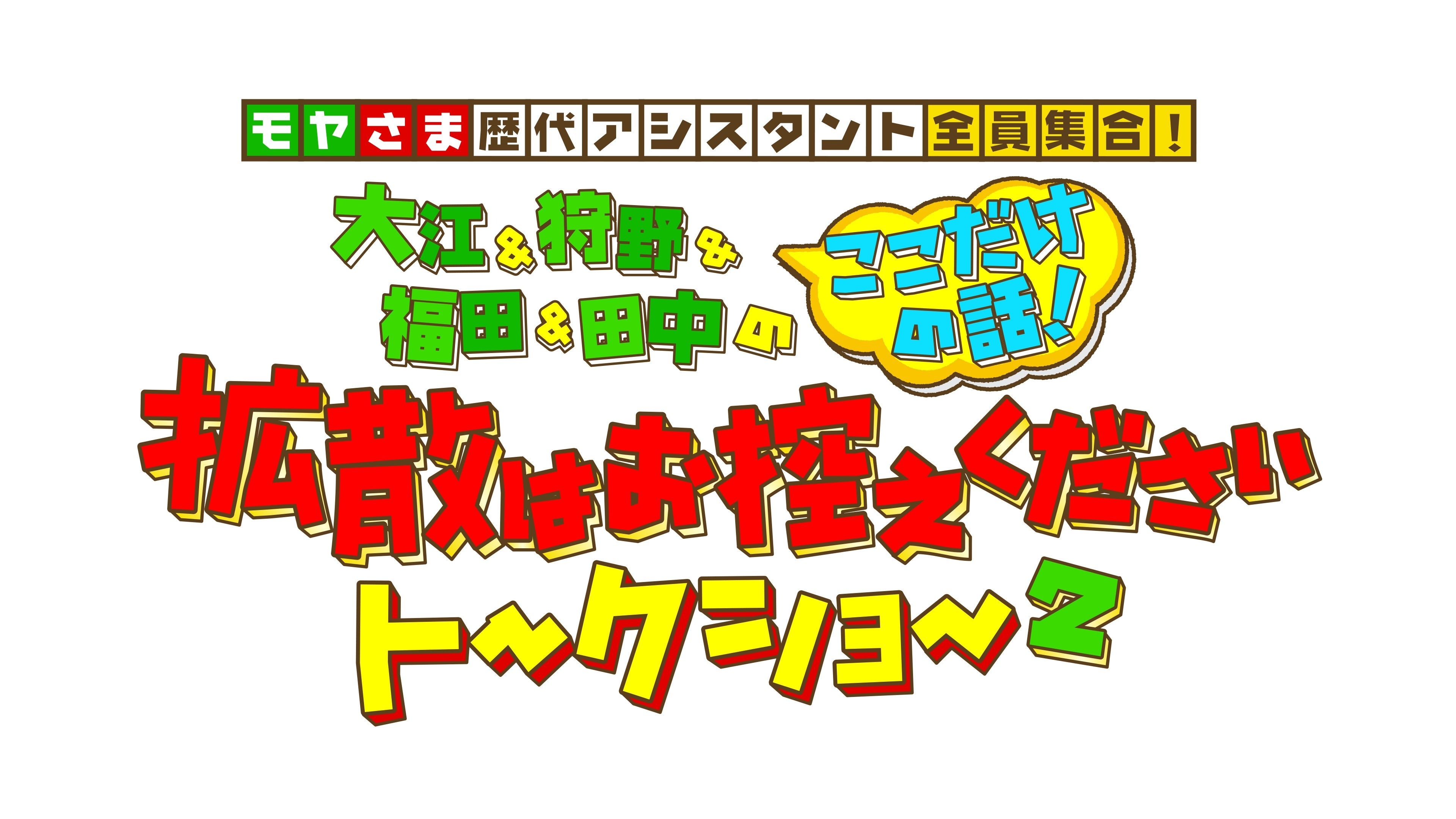 昨年夏に開催し大好評だったモヤさま歴代アシスタントによるトークショーの第2弾。今回はなんと初代アシスタントの大江キャスターが初参戦!番組の裏話から4人のプライベートな話まで。拡散厳禁!この場限りの貴重なドイヒートークが展開します!