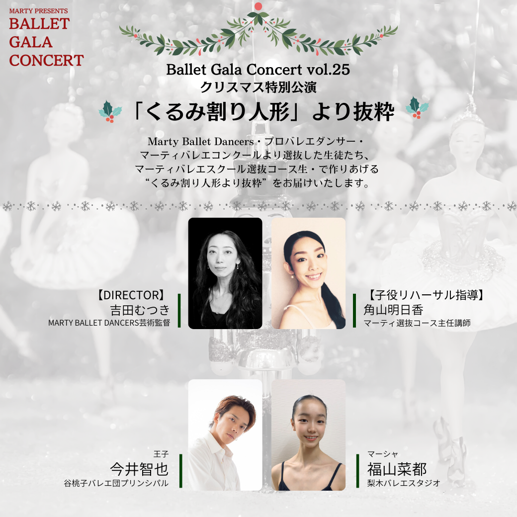クリスマスのご予定はお決まりですか?この度、12月23日(土)に開催のBallet Gala Concert vol.25 in 埼玉にて、『くるみ割り人形』より抜粋の上演が決定しました。クリスマスでお馴染みのこの作品を上演し、みなさまのクリスマス気分をより盛り上げます。ぜひ本物の『くるみ割り人形』を楽しんでください。