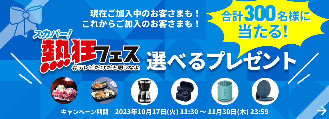 スカパー! は、10月1日(日)から11月30日(木)まで「スカパー! 熱狂フェス #テレビだけだと思うなよ」を開催中です。