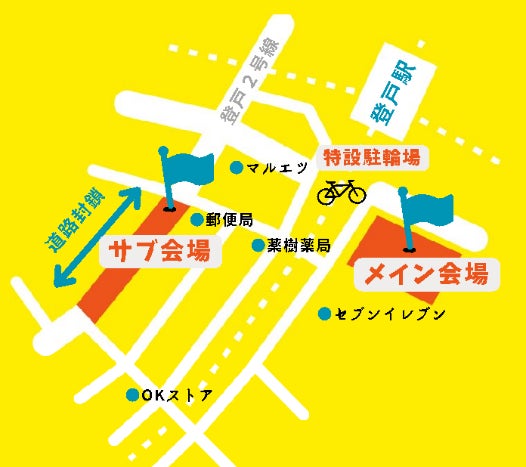 (メイン会場:登戸駅前の90街区・サブ会場:都市計画道路 登戸2号線)
