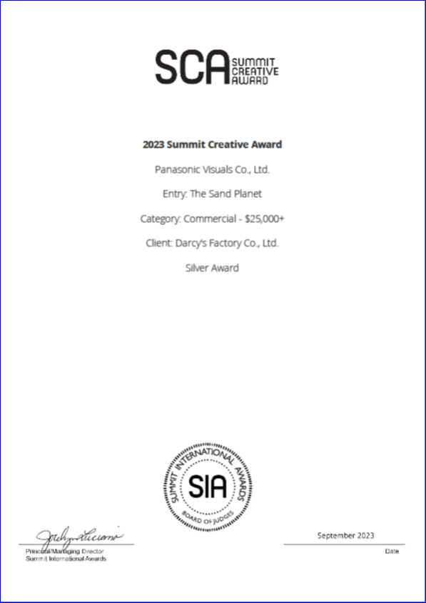 ダシーズギルトフリーアイスのCM「砂の惑星篇」がアメリカの広告賞【Summit Creative Award 2023】(サミット・クリエイティブ・アワード)で日本唯一のSilver Awardを受賞