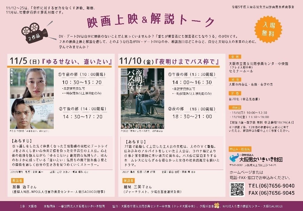 映画上映&解説トーク『ゆるせない、逢いたい』『夜明けまでバス停で』