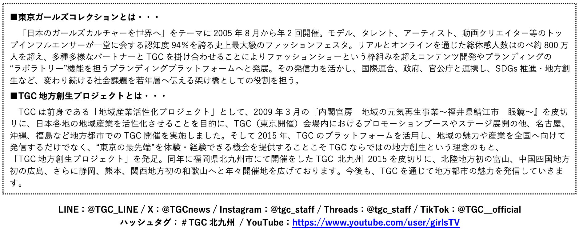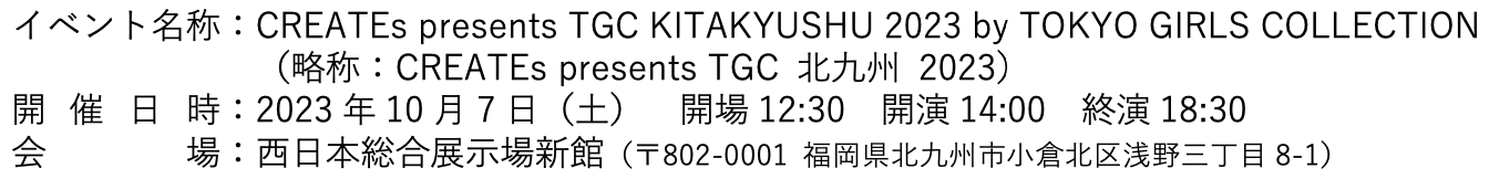 【 CREATEs presents TGC KITAKYUSHU 2023 by TOKYO GIRLS COLLECTION 開催概要 】 |