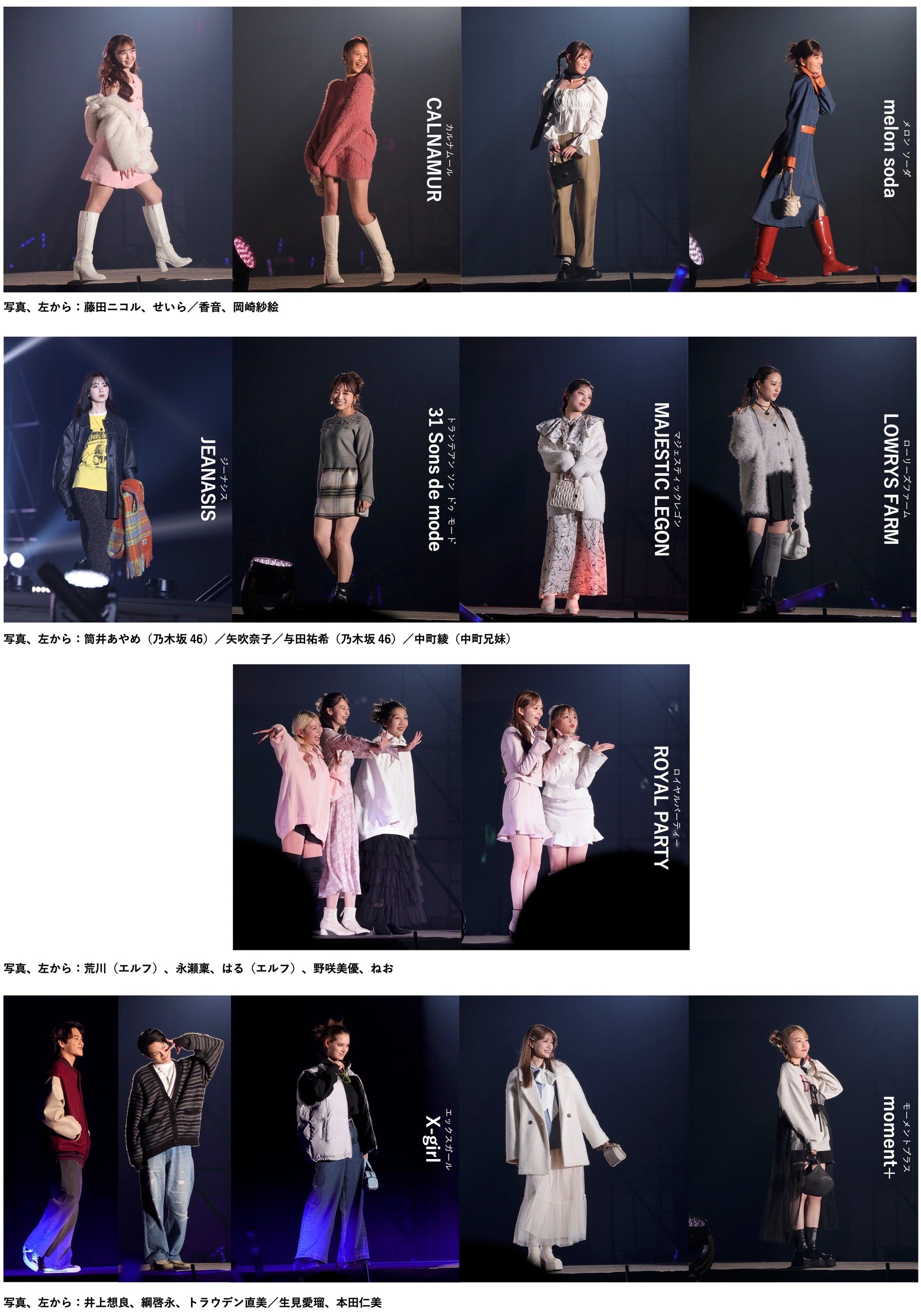 ブランド:31 Sons de mode、BG、CALNAMUR、ELLEgirl、ENVYM、JEANASIS、LOWRYS FARM、MAJESTIC LEGON、melon soda、moment+、ROYAL PARTY、WEGO、X-girl ※アルファベット順 全13ブランド ゲストモデル:嵐莉菜、アリアナさくら、安斉星来、池田美優、市川美織、入江美沙希、大峰ユリホ、岡崎紗絵、岡本夏美、楓、香川沙耶、景井ひな、葛西杏也菜、加藤ナナ、香音、茅島みずき、川口ゆりな、菊池日菜子、小宮山莉渚、紺野彩夏、雑賀サクラ、桜井美悠、桜井玲香、鈴木ゆうか、せいら、高比良由菜、田鍋梨々花、筒井あやめ(乃木坂46)、鶴嶋乃愛、トラウデン直美、中条あやみ、那須ほほみ、菜波、新沼凛空、Niki、生見愛瑠、ねお、野咲美優、林芽亜里、藤井サチ、藤田ニコル、ブリッジマン遊七、本田仁美、みとゆな、村瀬紗英、矢吹奈子、ゆうちゃみ、与田祐希(乃木坂46)、莉子 ※50音順 全49名 モデル:黒江こはる、胡熊もえ、ヒナタ、福岡みなみ、ゆいちゃみ ※50音順 全5名 ゲスト:井上想良、エルフ、木戸大聖、翔、須田亜香里、綱啓永、とうあ、中町兄妹、なこなこカップル、ばんばんざい、平井桃伽、藤原大祐、村重杏奈、やす子、山下幸輝、よしあき&ミチ ※50音順 全16組 メインアーティスト:スカイピース、Da-iCE、BALLISTIK BOYZ、宮世琉弥、WATWING ※50音順 全5組 オープニングアクト:昼夜逆転、華、HaL.、メインタイトル ※50音順 全4組 MC:久代萌美、ニューヨーク ※50音順 ステージ内容:ファッションショー、アーティストライブ、パートナーステージ、パートナーブース 他 主催:東京ガールズコレクション実行委員会 共催:北九州市、福岡県、北九州市都心集客推進委員会 プラチナパートナー:株式会社クレイツ パートナー:第一交通産業株式会社、イオンフィナンシャルサービス株式会社、株式会社スターフライヤー、17LIVE株式会社、株式会社マイナビ、株式会社オリエンタルコンサルタンツ、株式会社フーディア、株式会社北九州銀行、北九州市 小倉けいりん、株式会社サンキュードラッグ、株式会社井筒屋、西日本電信電話株式会社、⽇産車体九州株式会社、西部ガス株式会社、花王株式会社、FLUFFY FORM、ローゼンバーグメディカル株式会社、ヤナイホールディングス株式会社、株式会社西日本シティ銀行、株式会社福岡銀行、SDエンターテイメント株式会社、株式会社九電⼯、アミュプラザ小倉、THE CONDITIONING ROOM 全27社 FOR 2025:大阪・関西万博 協力:北九州商工会議所、小倉中央商業連合会、菓匠きくたろう、氷菓子屋KOMARU、水巻町、全国農業協同組合連合会福岡県本部、全農パールライス株式会社、福岡八女農業協同組合、福岡県茶業振興推進協議会、福岡県農林水産物ブランド化推進協議会、TG Japan株式会社、BEA、株式会社糸島みるくぷらんと、株式会社肉の山形屋、農事組合法人福栄組合、遠賀屋 糀こめのはな、福岡県商工会連合会、EAT-Plus、株式会社やまひら・夜明茶屋、株式会社SAN-KEI、大村美容ファッション専門学校、北九州市立大学、九州国際大学、九州CTB理容美容専門学校、九州女子大学、福岡ビューティーアート専門学校、福岡美容専門学校、福岡ベルエポック美容専門学校 他 公式メディア:girlswalker 演出:DRUMCAN 企画/制作:株式会社W TOKYO |