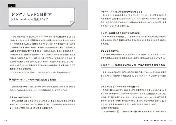 シティポップ再評価の著しい昨今ですが、「真夜中のドア〜stay with me」(松原みき)、「September」(竹内まりや)、「ふたりの夏物語」(杉山清貴&オメガトライブ)、「思い出のビーチクラブ」(稲垣潤一)の作曲者である著者が、自作曲をもとに解説するリアルな作曲法は、きっと多くの人の参考になることでしょう。