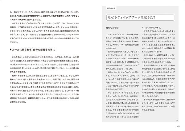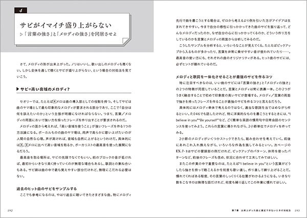 また「サビがイマイチ盛り上がらない」など、曲作りに伴うさまざまな問題への対処法も提案。コラムと併せて読むことで、きっと作曲の幅が広がることでしょう。