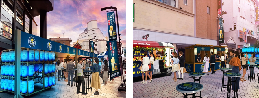 新発売を記念し、10月20日(金)~29日(日)の期間、レモンサワー好きな方が多く集まる浅草の地に「鬼・檸檬堂通り」が登場します。期間中には「檸檬堂」カラーの提灯やゲート、櫓が置かれ、通り全体をジャックし、新しくなった「檸檬堂 鬼レモン」を、レモンサワー好きが集まる浅草の皆さんにいち早く試して頂ける「新・鬼レモン」大試飲会を開催。ここでしか味わえない「檸檬堂」オリジナルメニューも販売します。